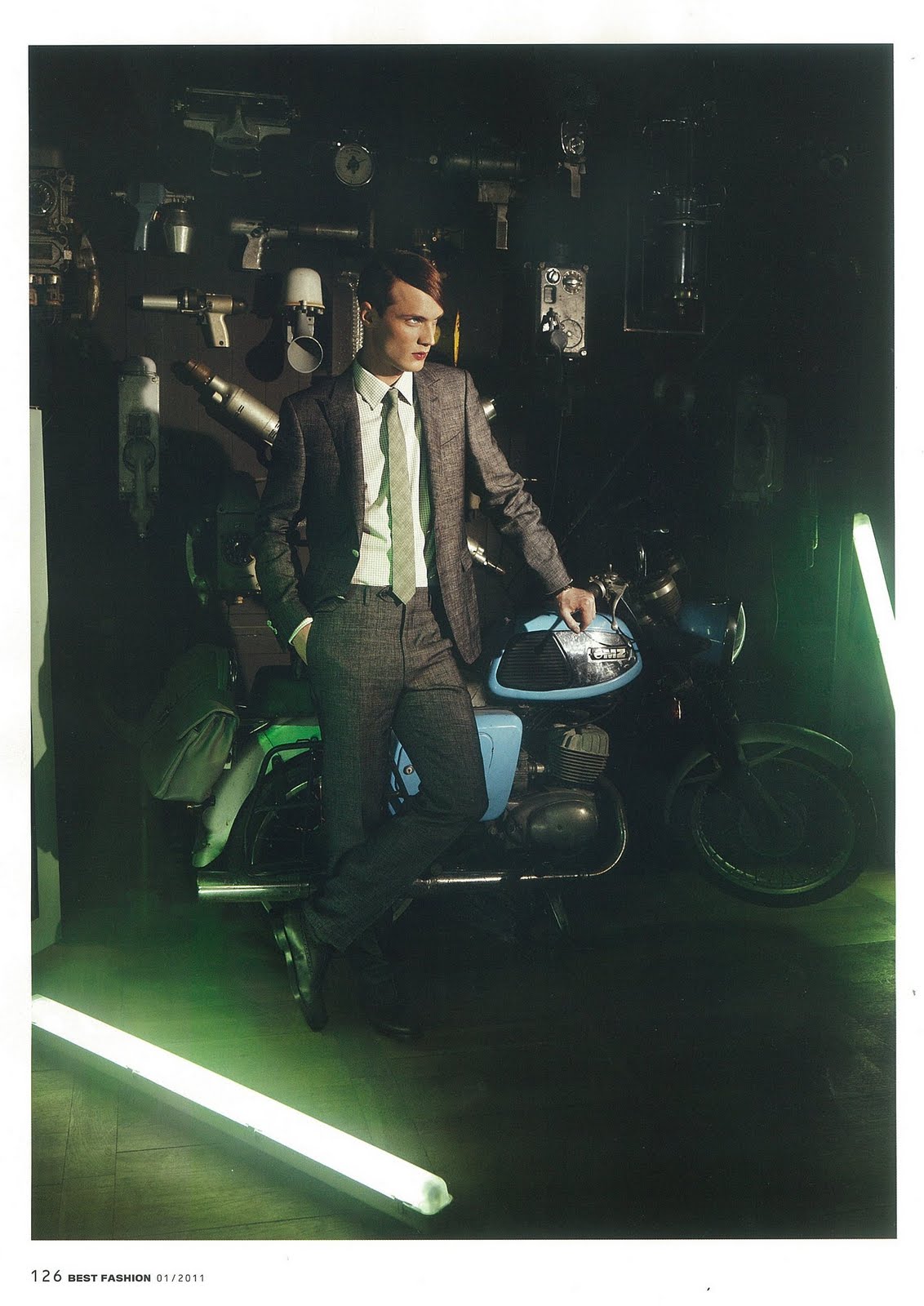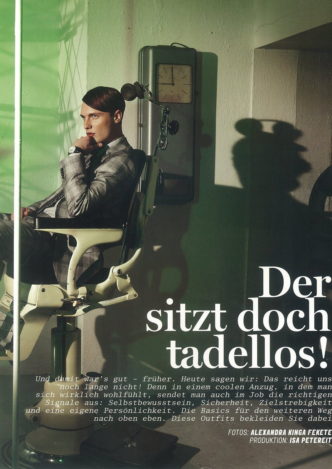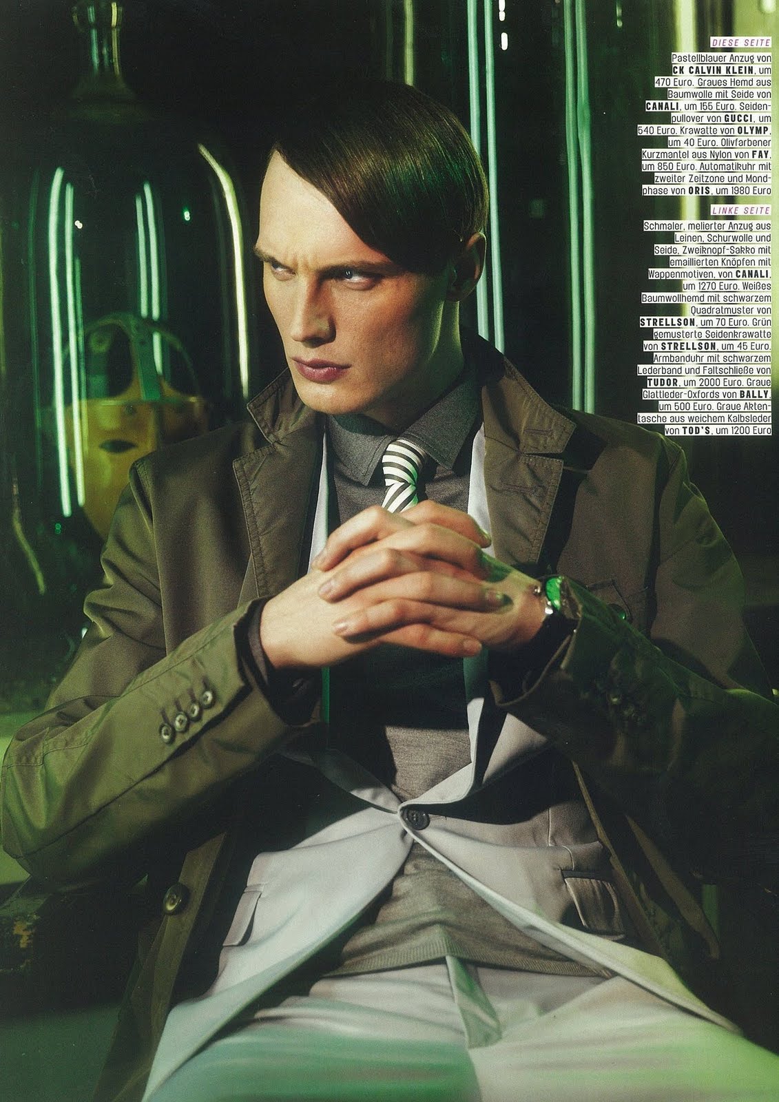 Conrad Matschke is shot by Alexandra Kinga and styled by Isa Petereit against the background of a surgical room, contrasting the sterility of a surgical room with the sharp suits and separates Conrad wears that have a modern silhouette and minimalist sensibility. Courtesy of hommemodel.blogspot.com/