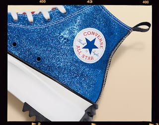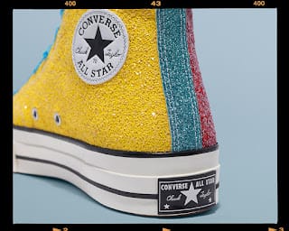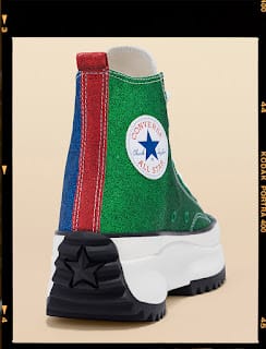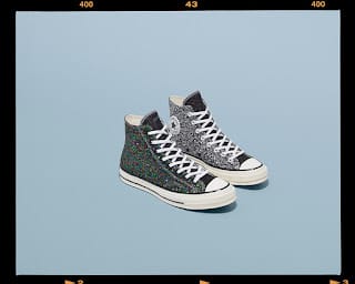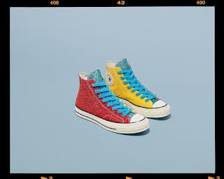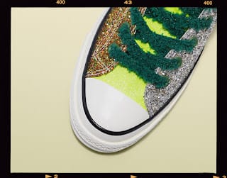 The latest result celebrates the GLITTER_GUTTER collection that launched the partnership. It includes a Chuck 70 available in three tri-panel colorways and finished with a complementary fuzzy lace. The newly created Run Star Hike — one-part Chuck, one-part runner — is available for the first time in tri-panel mismatched Glitter, the original colorways from the first GLITTER_GUTTER drop.