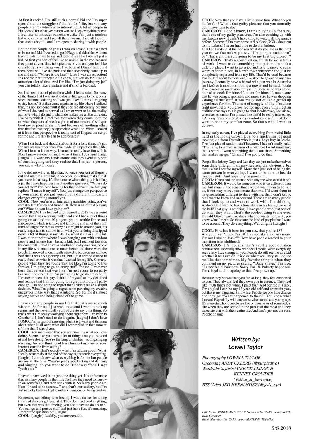 “Taking it to the street” is the title of this cover story by Lowell Taylor featuring American actor Cameron Boyce groomed by Andy Calero, styled by Mike Stallings & Kennet Crowder and shot by Lowell Taylor for the current issue of American magazine Cool America.