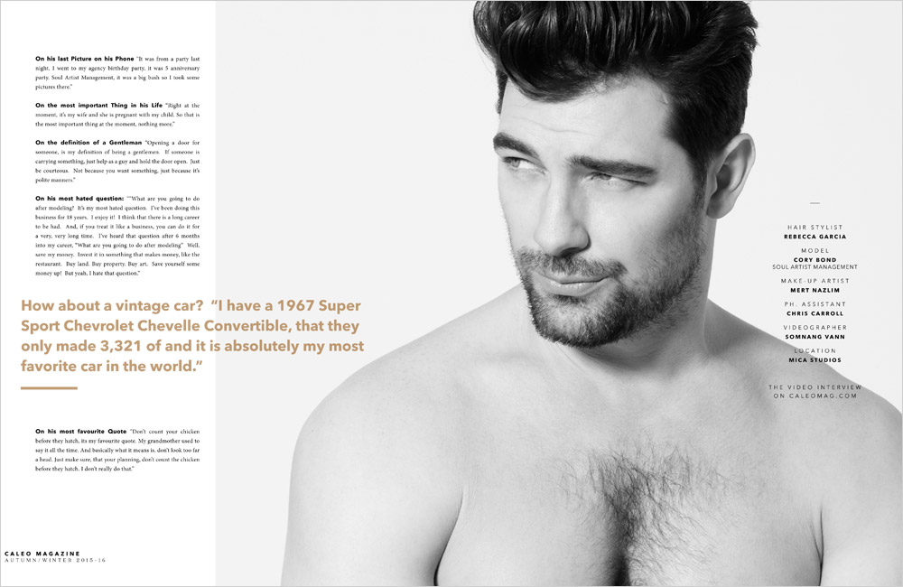 “Let’s say my career highlight It would be getting a Times Square billboard for Michael Kors underwear campaign. It’s kind of unbelievable, you walk out of the subway and you see yourself wrapped around this building. I think that was the highlight of my career so far. I really enjoy modeling. It has been good to me.” – Cory on his career highlights.” – Malemodelscene.net
