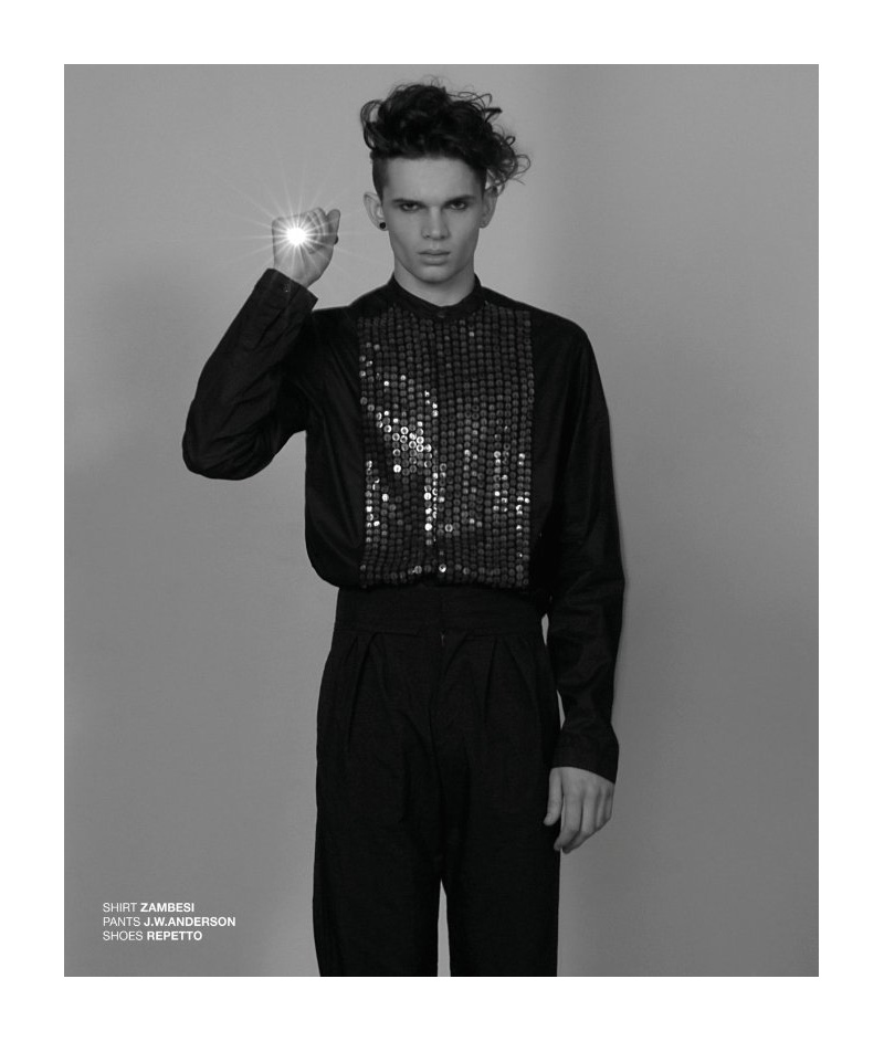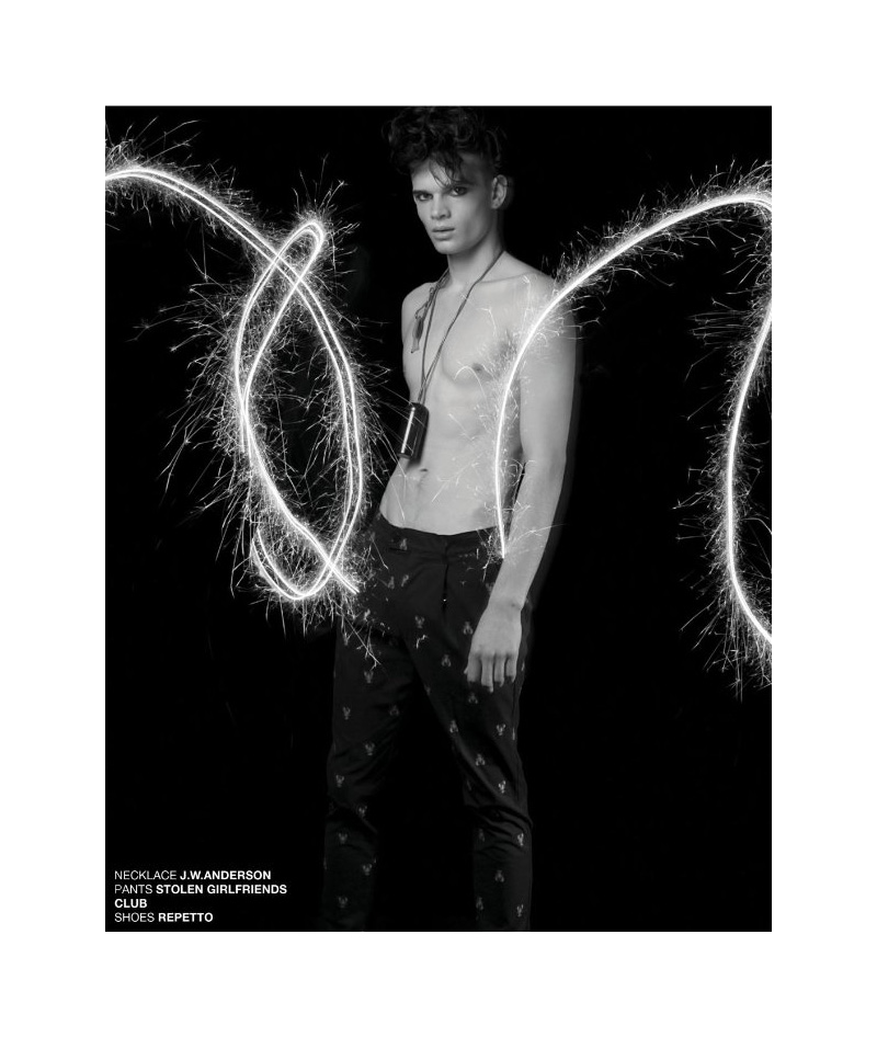 ‘Creating the ultimate light show, London-based photographer Sukriti shoots Craig Dickinson for the latest edition of Esper magazine. Styled by Eiji Takahashi, a surprising elegance is achieved at large by garments from J.W. Anderson, Nakkna and Zambesi.’ – Courtesy of thefashionisto.com