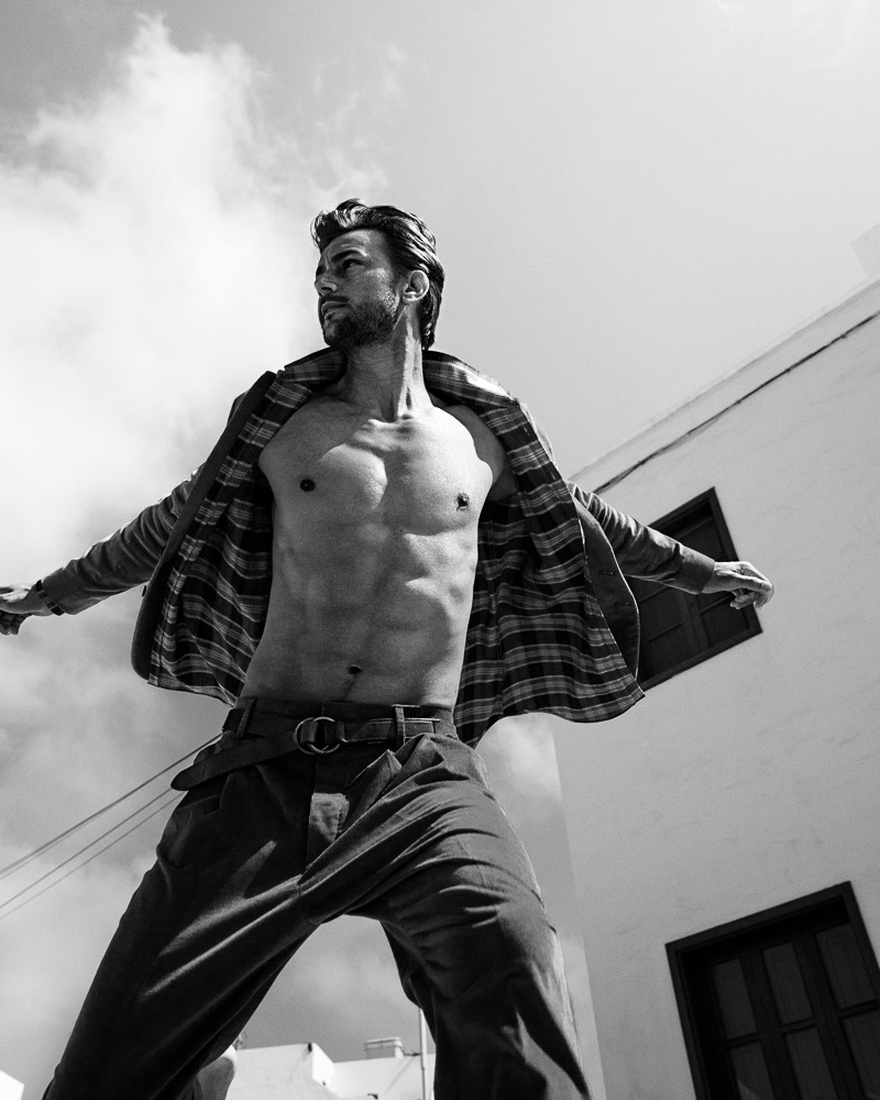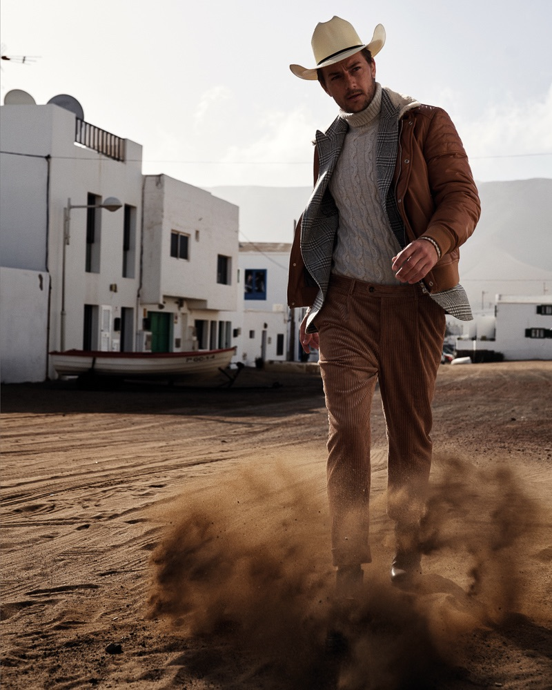 “Craig Le Roux dons western-inspired style for the pages of DRY magazine. The South African model joins Valery Kaufman for the occasion. Traveling to Palma De Mallorca, Spain, Craig appears before the lens of photographer Stephan Glathe. Donning fall fashions, Craig is styled by Sayuri Bloom. Craig’s wardrobe comes together with earthy tones and classic fabrics such as corduroy.” – TheFashionisto.com