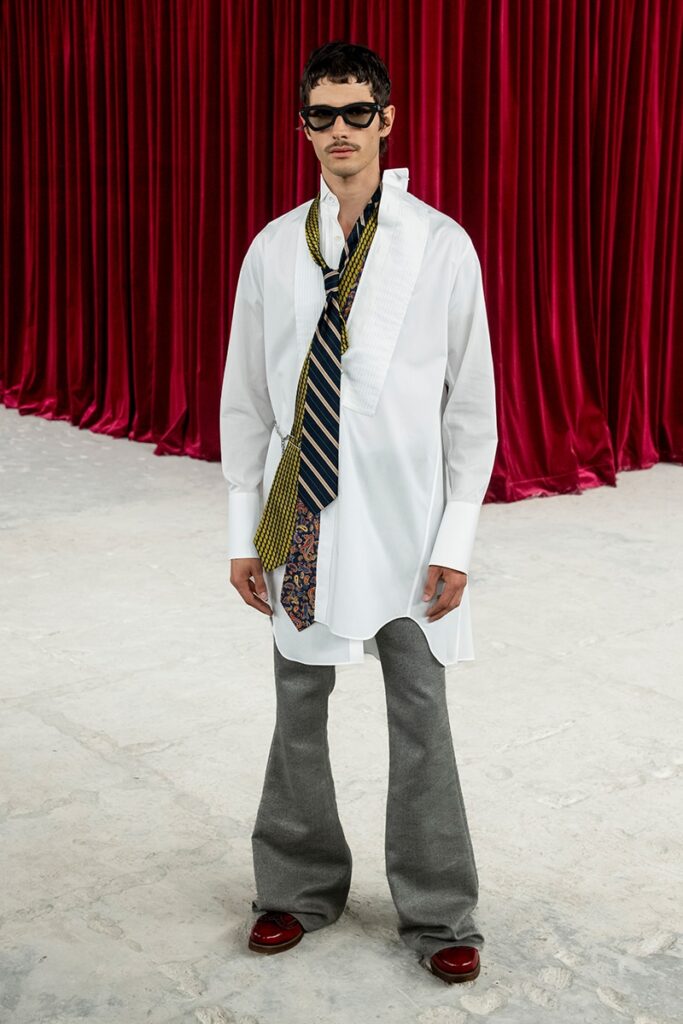 For Spring/Summer 2026, shown during Paris Fashion Week, the designer revisited his own archive, digging up an idea from his Fall/Winter 2004 collection: suits cut from antique upholstery fabrics. But this time, he didn’t just repeat, he remade.