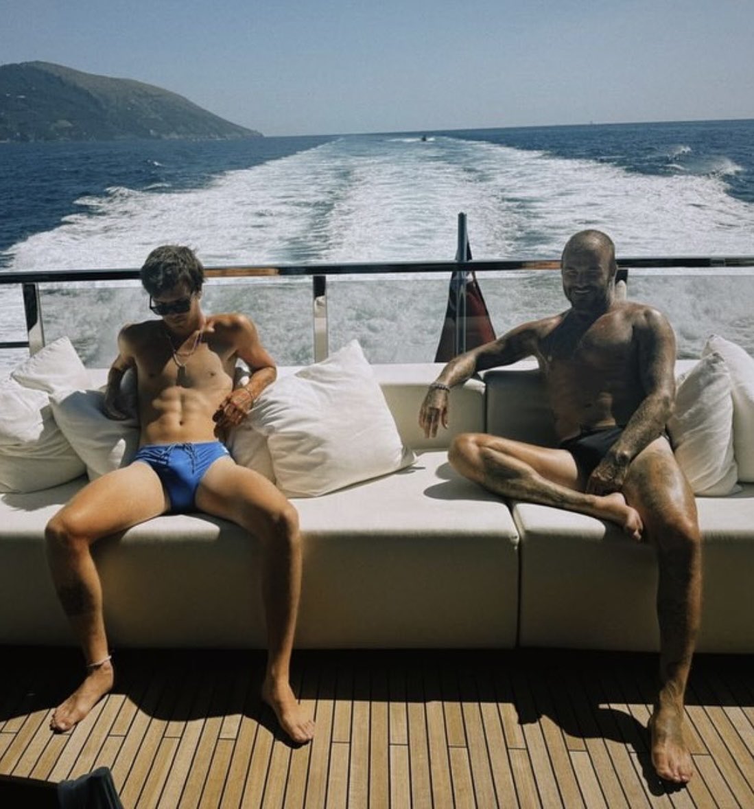 Cruz Beckham is at it again! We’ve been on bird watch for the past month, keeping tabs on the young Beckham boy. This marks the third sighting, where he’s seen lounging in a blue Speedo beside his famous father, David Beckham.