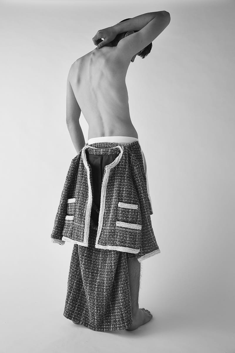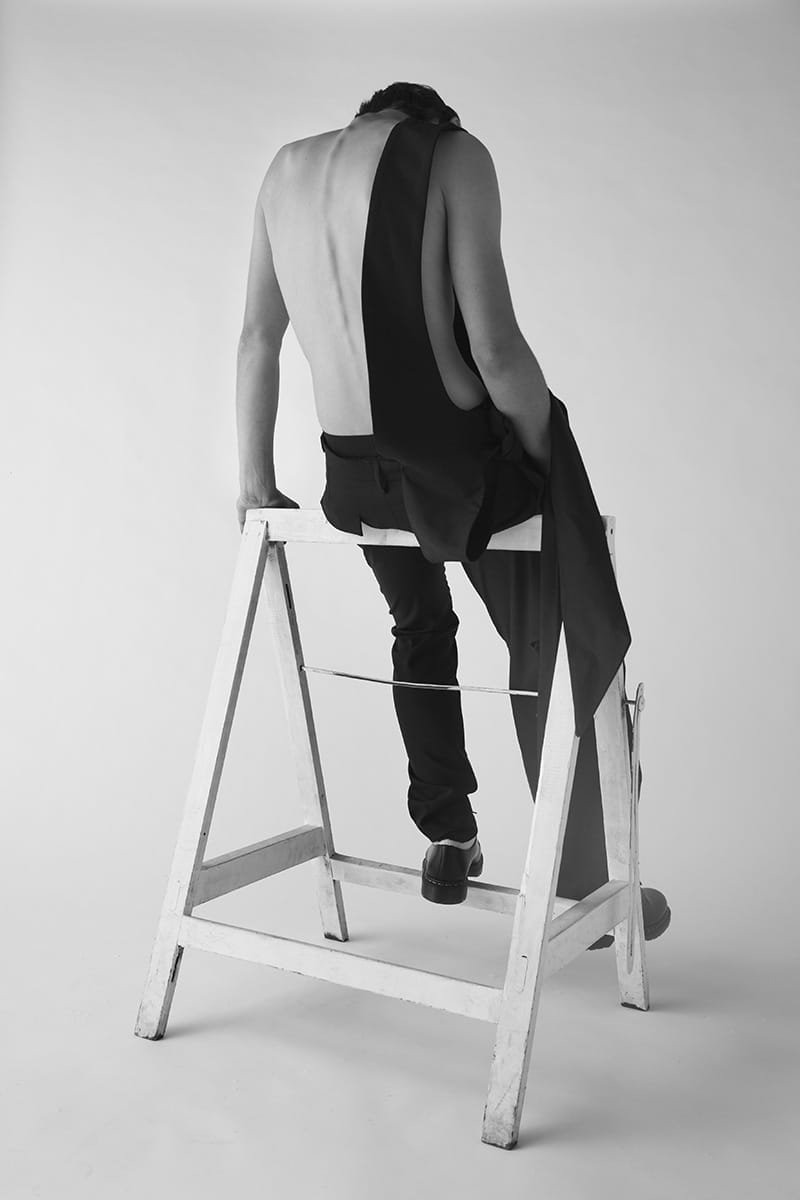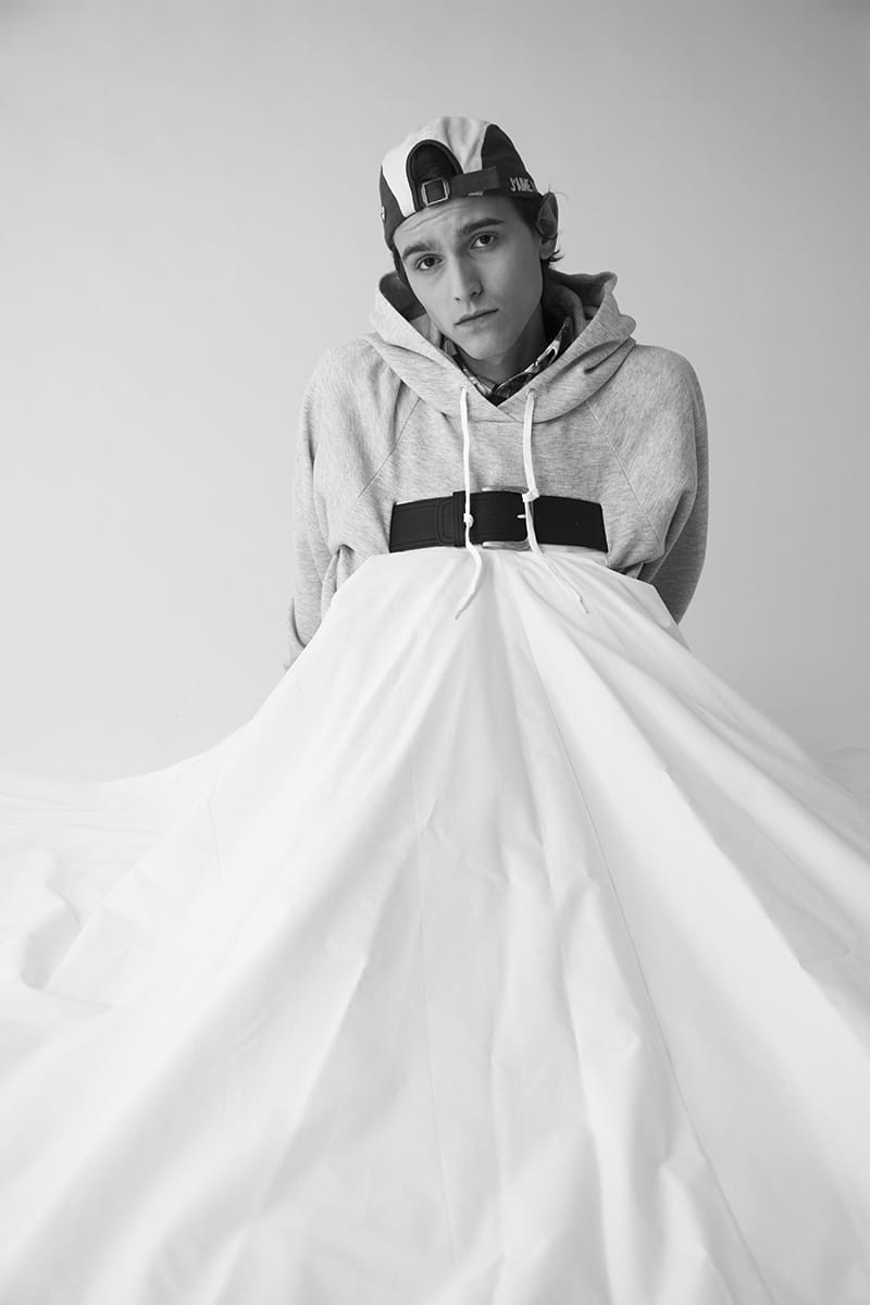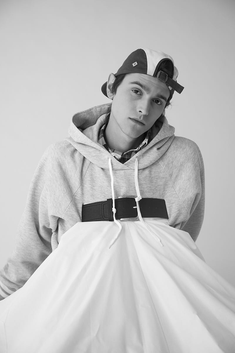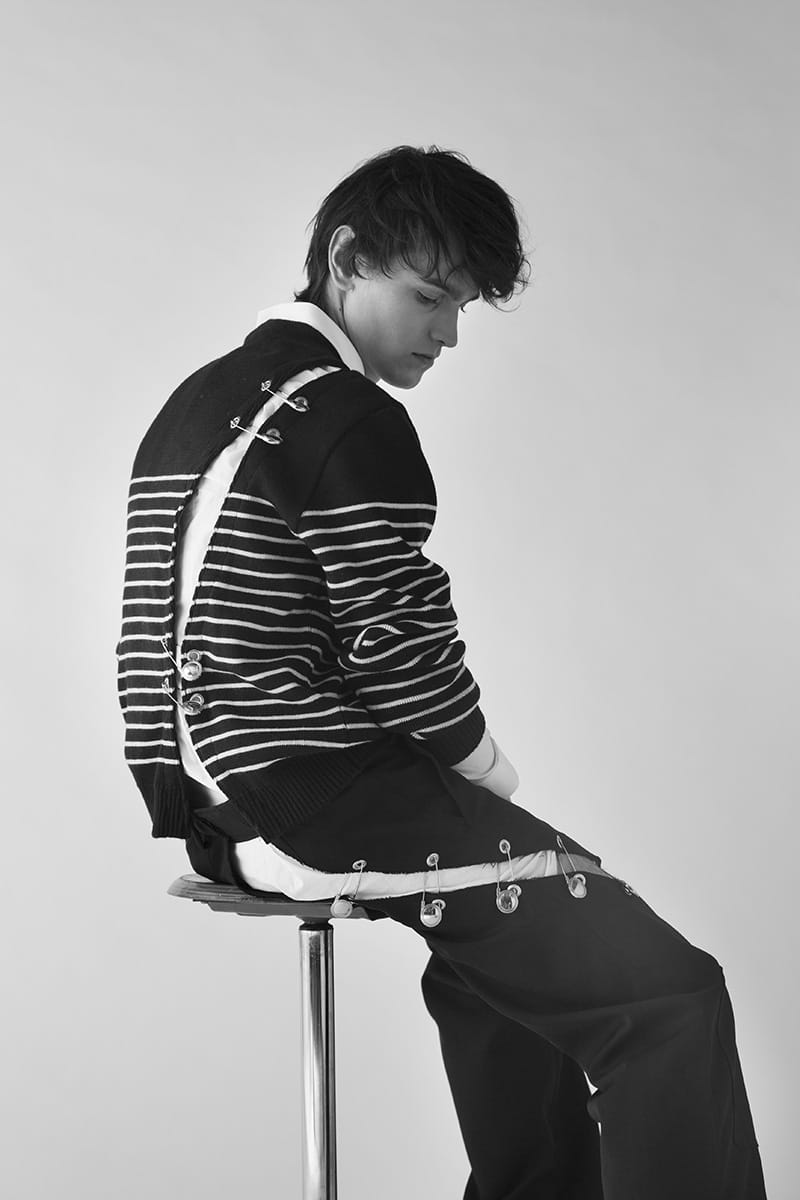 “Cyril Bourez is a Master student at La Cambre (Brussels). His menswear collection titled “Merci Beaucoup” was inspired by iconic pieces that made him dream of making fashion.