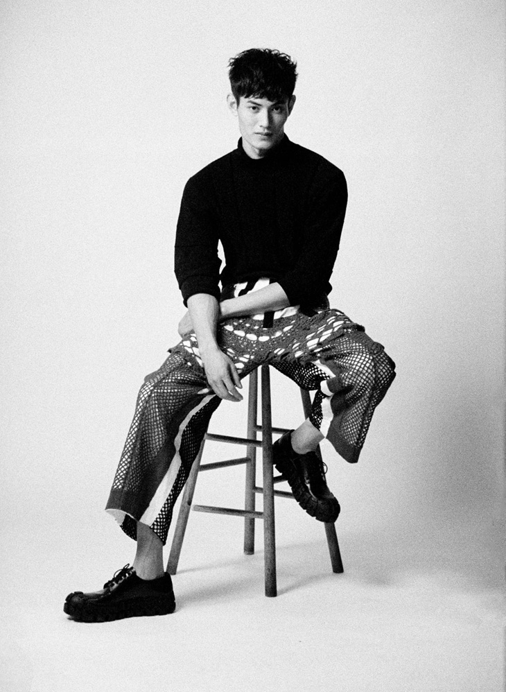 In charge of styling was Sylvester Yiu, with casting from Miro Raynov, and production by ROK11. Beauty is work of hair stylist Davide Barbieri, and makeup artist Celia Evans.” – Malemodelscene.net