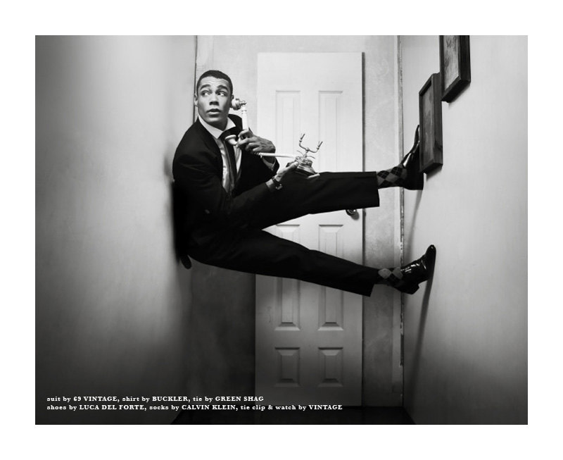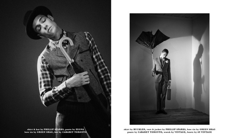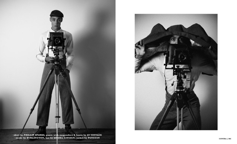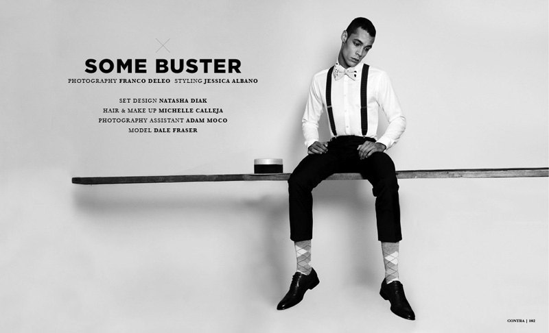 Dale Fraser steps into the shoes of the iconic Buster Kaeaton for a sharp black and white story by Franco Deleo. Photographed for the tenth issue of Contra, Dale is outfitted by Jessica Albano in a smart array of pieces from Phillip Sparks and other labels. Courtesy of – thefashionisto.com