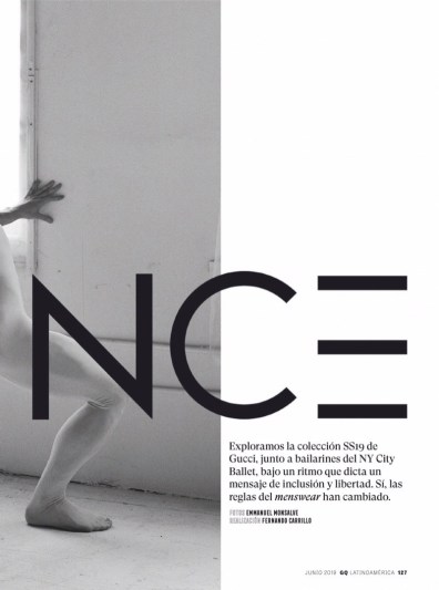 “Hitting graceful lines, dancers Barton Cowperthwaite and Harrison Ball come together for the pages of GQ Latin America. The pair stars in an editorial for the magazine’s June 2019 issue. Emmanuel Monsalve photographs Harrison and Barton in New York. Meanwhile, stylist Fernando Carrillo oversees a wardrobe, which features Gucci. Embracing a tailored flair, Barton and Harrison showcase Gucci’s dandy menswear.” – TheFashionisto.com