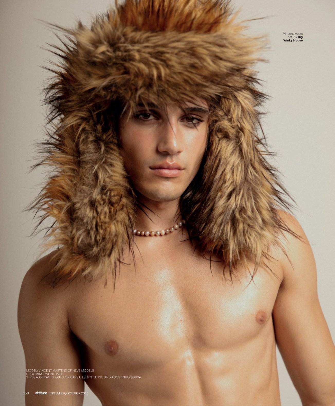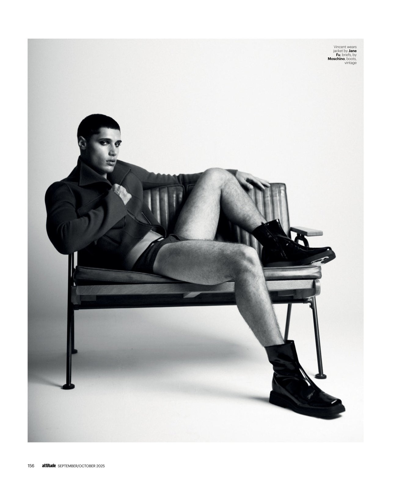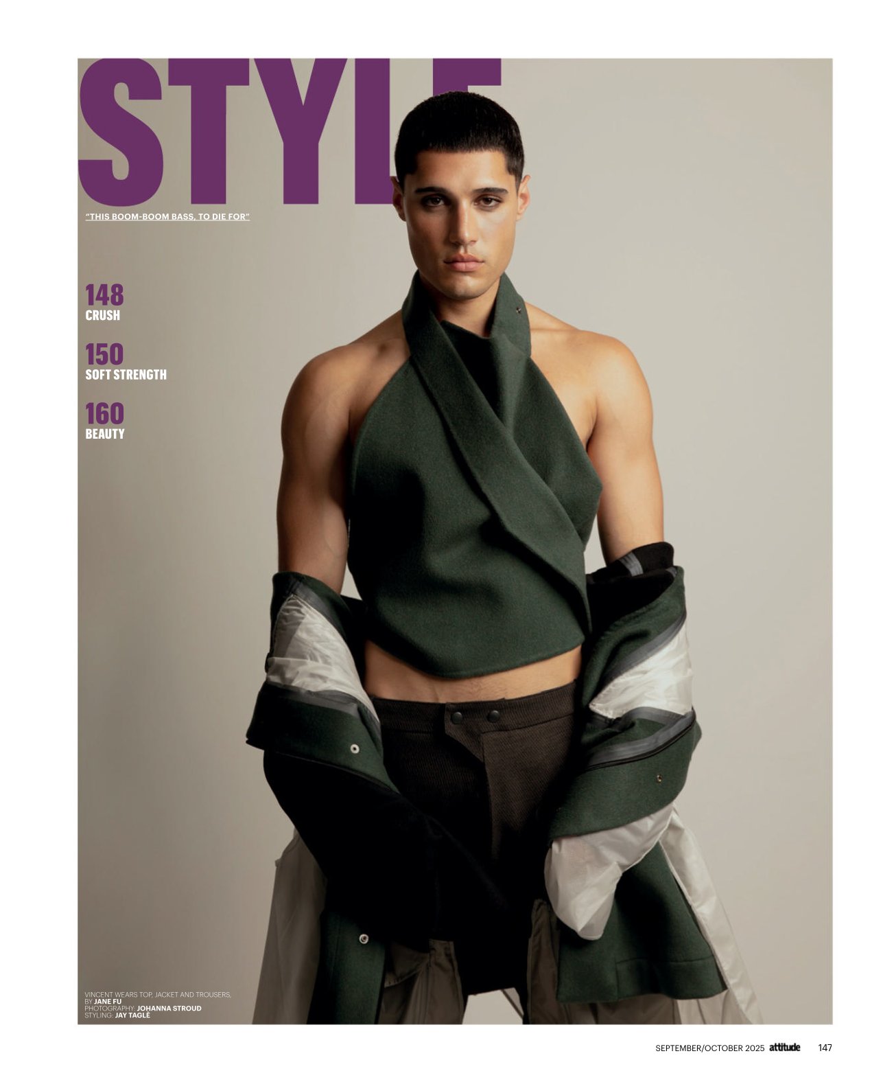 Danish model Vincent Martens Mosgård fronts Attitude’s Dec 2025 editorial “Soft strength,” shot by Johanna Stroud.