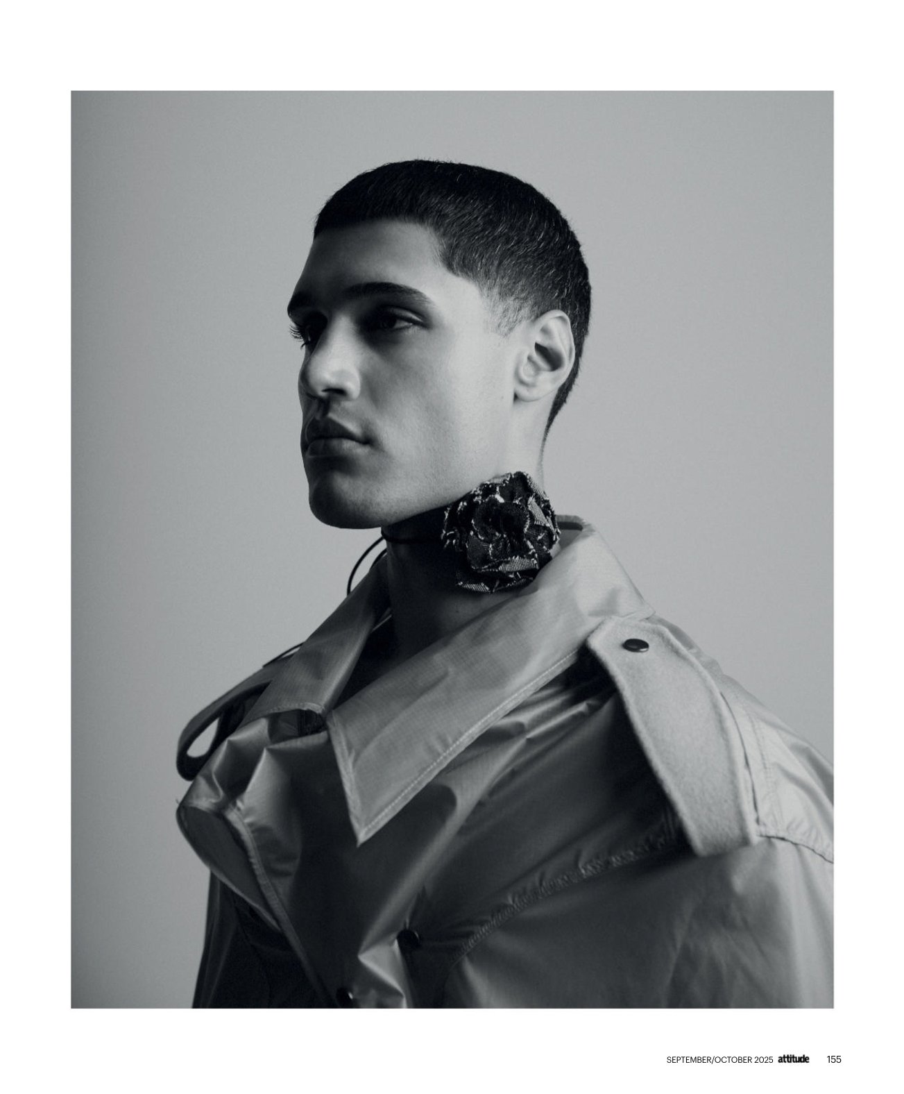 The spread leans into quiet resilience—Mosgård’s sculpted frame softened by fluid styling and intimate framing. (Attitude’s December 2025 issue highlights new European talent, with Mosgård’s feature anchoring the men’s fashion editorial.)