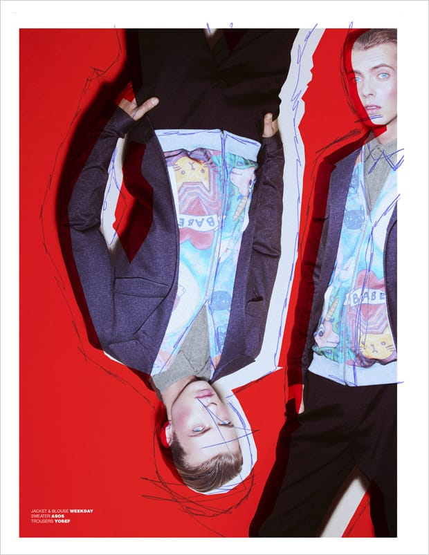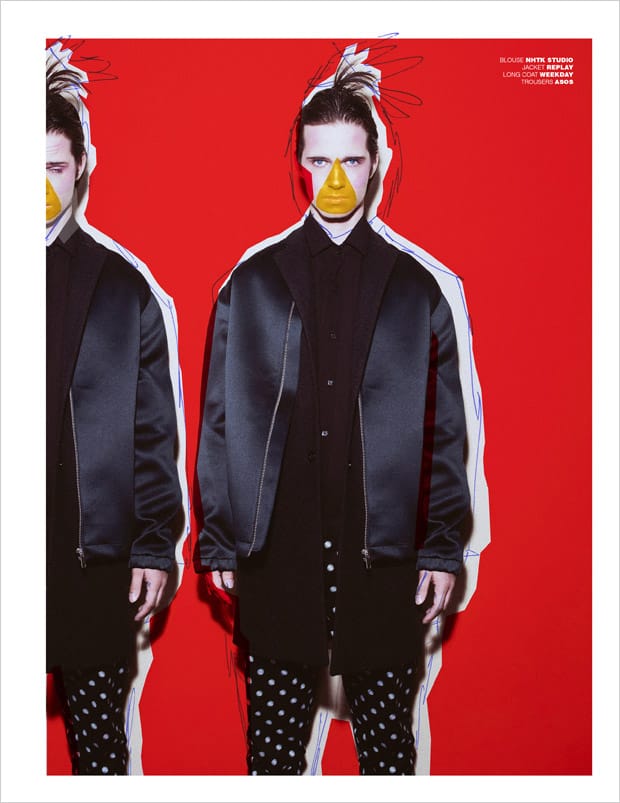 For Roses are red, violets are blue. I’m schizophrenic and so are you story models are wearing selected looks from Naomi Hille, Yosef, Topman, Gidah, Nhtk Studio, Replay, Weekday, Asos, Perrine Philomeen, Yuki Ito, Zem, Weekday, Mai – Gidah, Selected, Jutka & Riska, and Monki.” – Malemodelscene.net