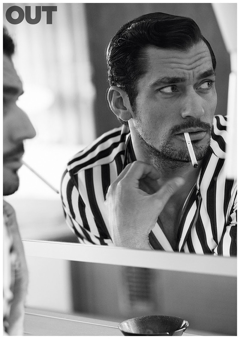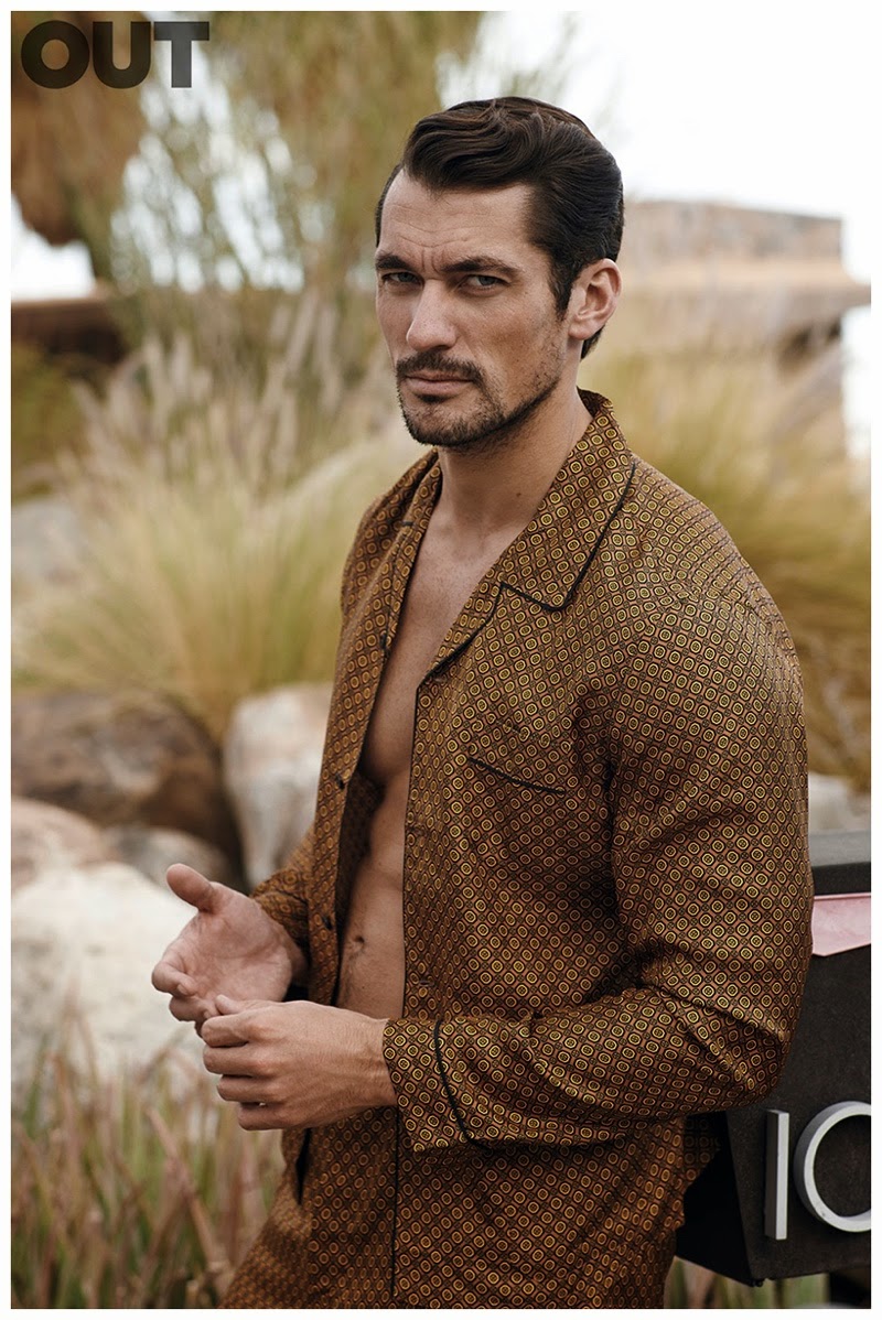 “Reuniting with stylist Grant Woolhead, David Gandy is front and center for OUT’s February 2015 cover. Captured by fashion photographer Blair Getz Mezibov, David is seen taking in a relaxed day, sporting casual men’s staples that include pajama-cut tops in fun spring prints.” – The Fashionisto