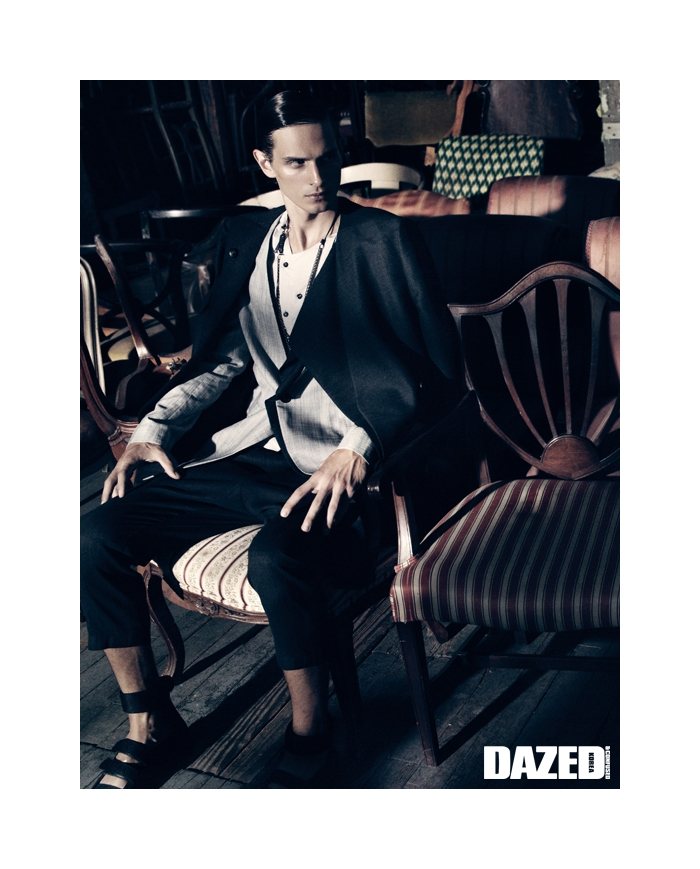 Modern Shambles–Working with stylist Aeri Yun, photographer Greg Harris captures David Smith for Dazed & Confused Korea. Donning sharp staples with a modern flirtation, drop crotch trousers and fun prints come together in a setting of great contrast. Courtesy of – thefashionisto.com