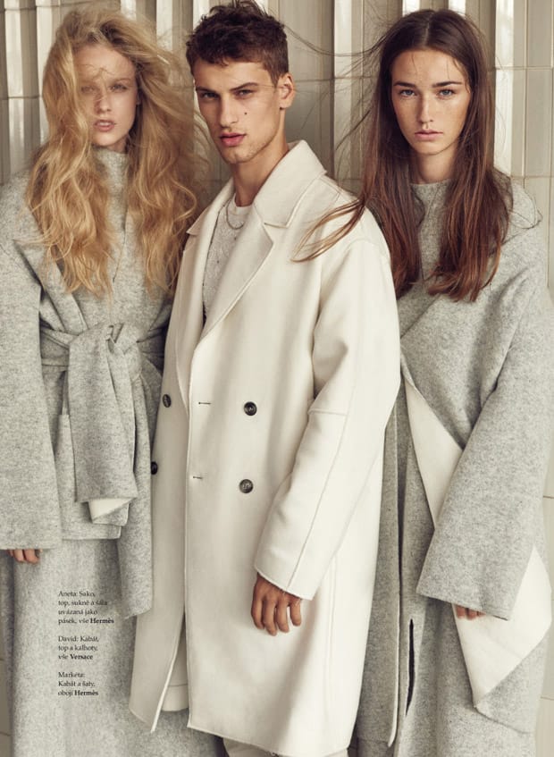 “The rising star on the modeling scene David Trulik takes the pages of Elle Czech‘s latest edition captured by fashion photographer Branislav Simoncik. Beauty is work of makeup artist Katerina Brans, and hairdresser Honza Balcarik. For the session David was joined by models Aneta Mestanova and Marketa.” – Malemodelscene.net
