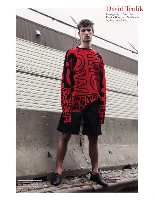“Top model David Trulik poses for the cover story of Manifesto Magazine‘s April 2017 edition captured by fashion photographer Brent Chua. In charge of styling was Jungle Lin, with creative direction from Jonathan Yee. Grooming is work of Mari Matsumoto.” – Malemodelscene.net