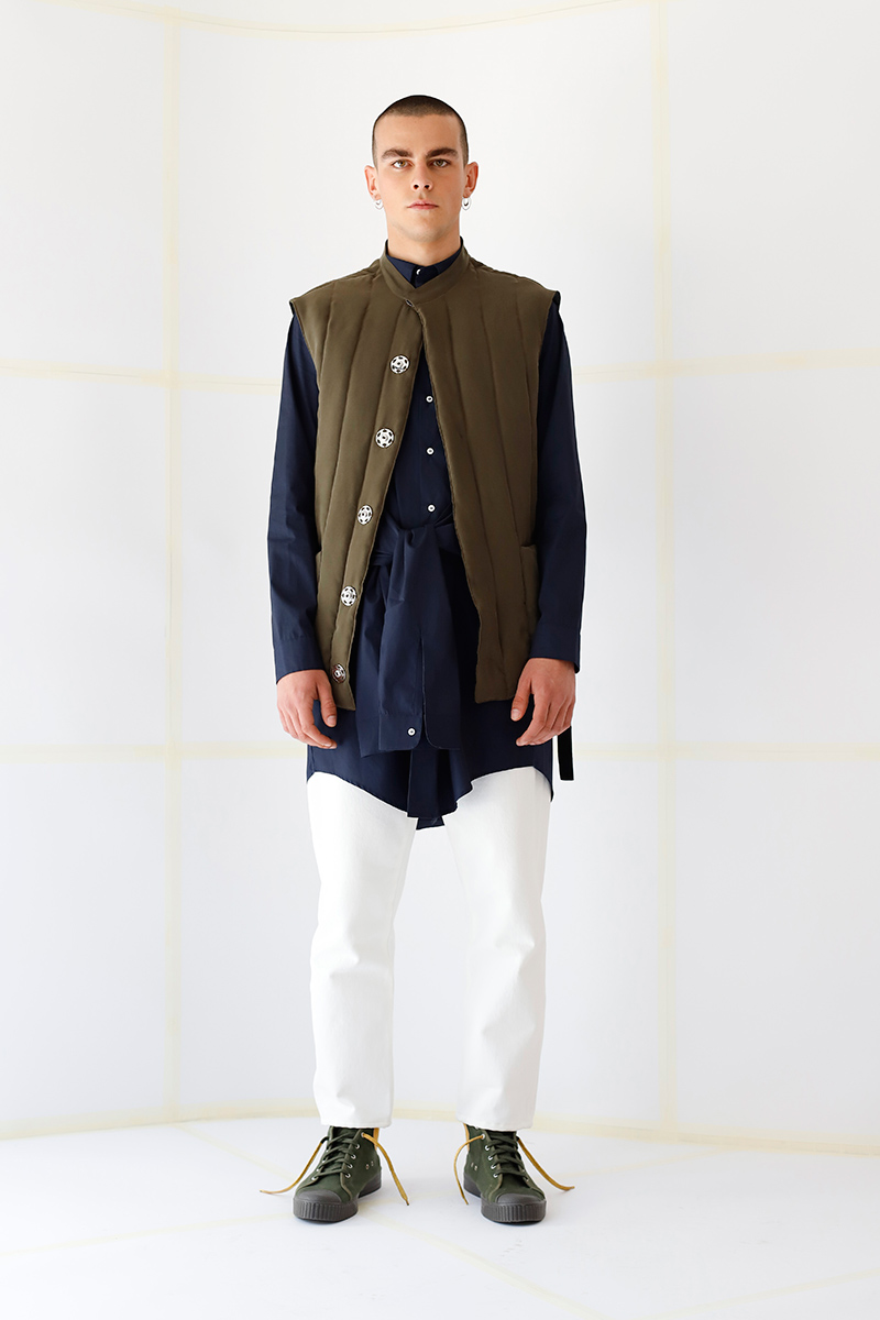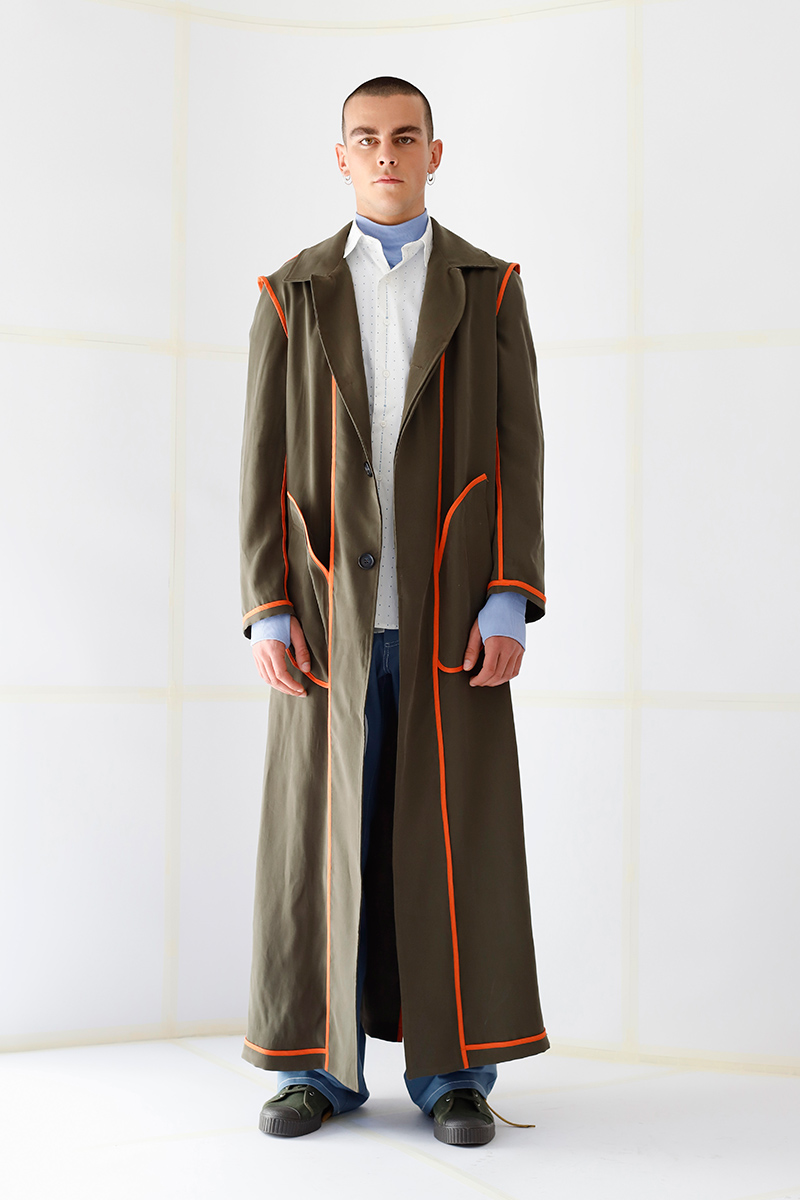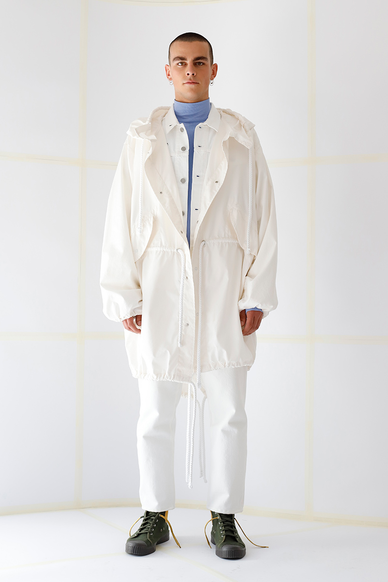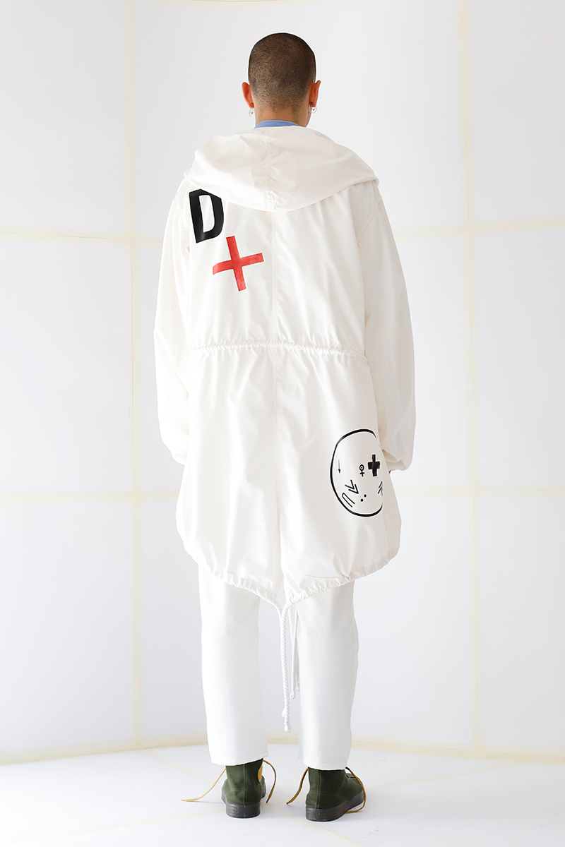 “Continuing with the codes of the brand, the new designing team went to the archives to find silhouettes and references present on the first collections of DAVIDELFIN. Tailoring, military uniforms, shirts, and tie-dye combined in a collection with a clear commercial vocation.” – FY Magazine.es