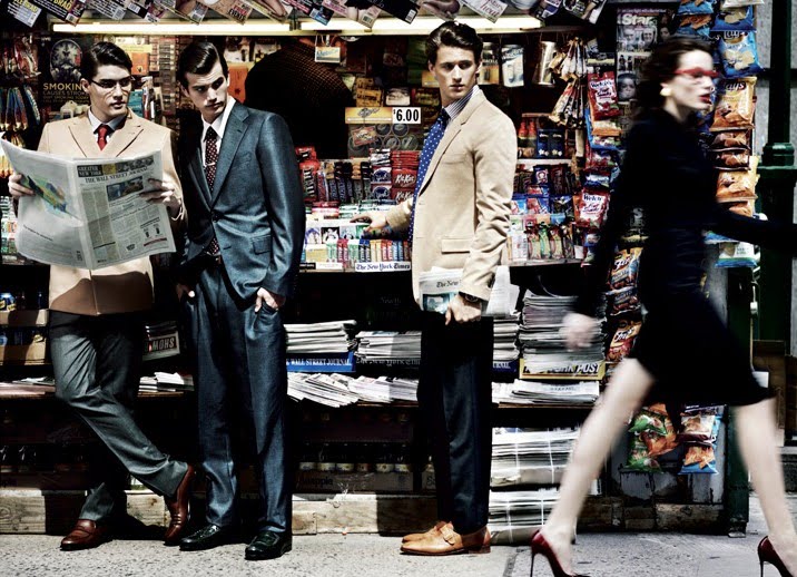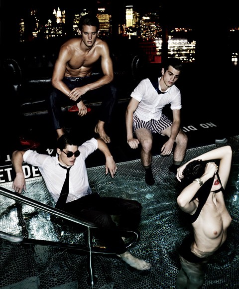 Inspired by the ‘financial cowboys of the 1980s’ the latest issue of VMAN showcases this fall’s powerful tailored looks in the editorial ‘A Day on Wall Street’ with photography by Josh Olins and styling by Jay Massacret. The featured models are AJ Abualrub, Eric Watts, Isaac Weber, Sarah Dumont, Garrett Neff, and T.R. Pescod. Courtesy of – Homotography