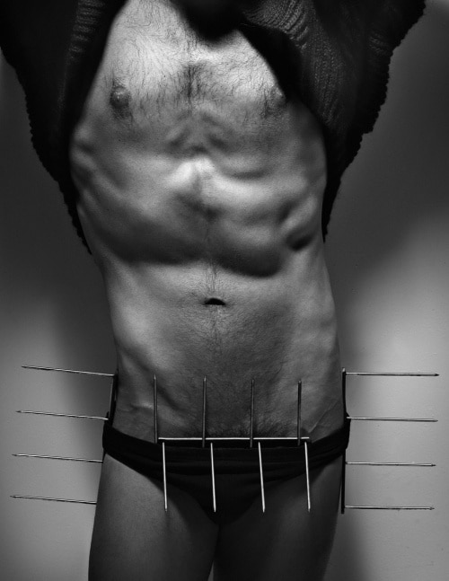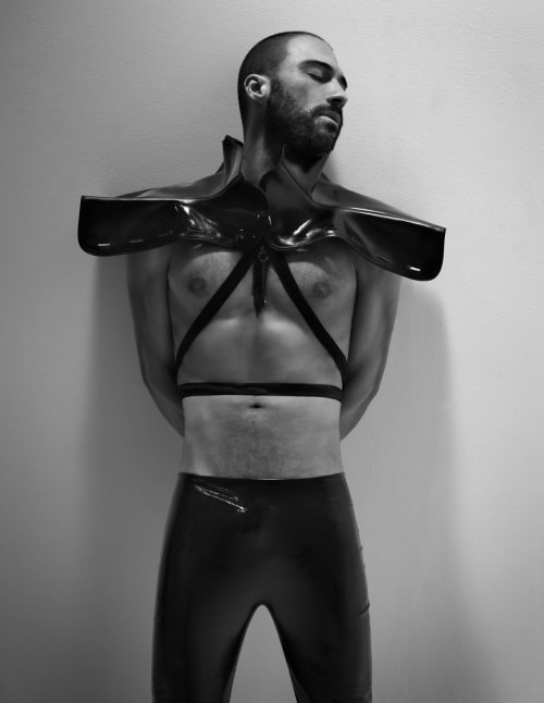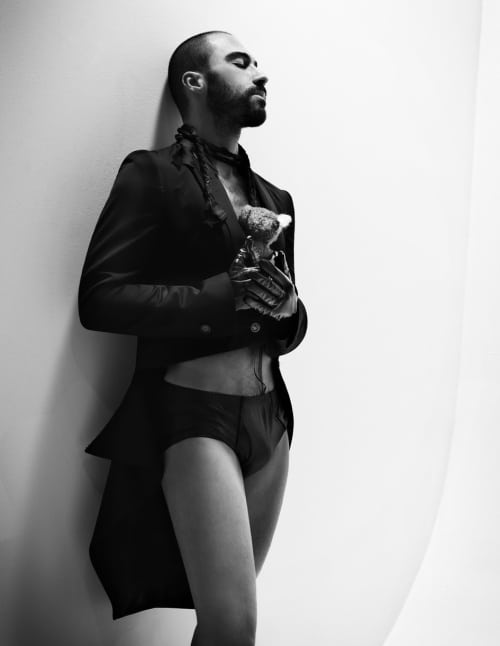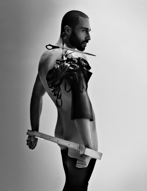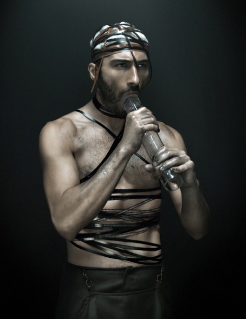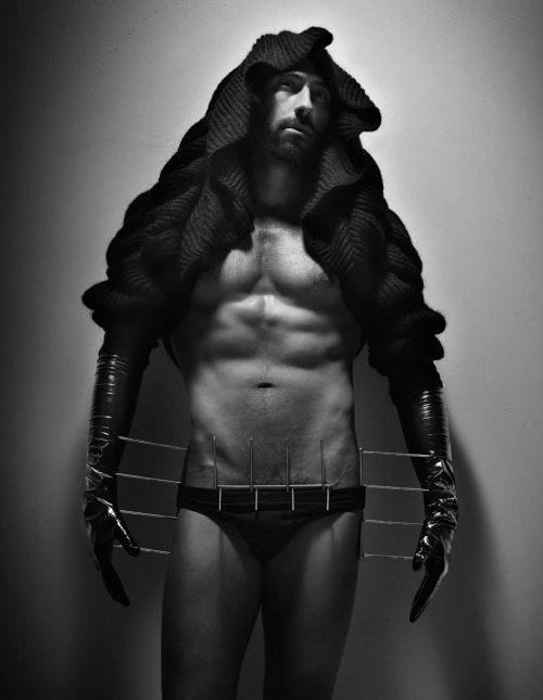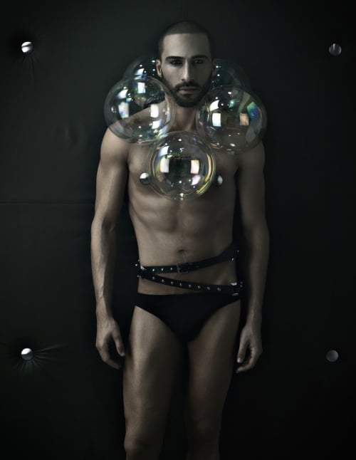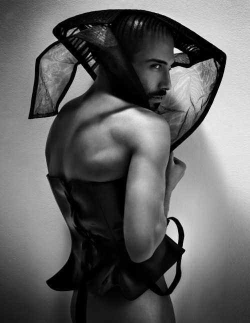 Fusing art, photography & avant-garde fashion, Alberto collaborated with three stylists: Manuel Menini, Nino Corito, and Simona Sanfedele on creating the look for this ambitious project. In addition to the images we present to you here, there is an accompanying video and a fashion exhibition. Homotography will share the DECADENCE video with us when it becomes available.