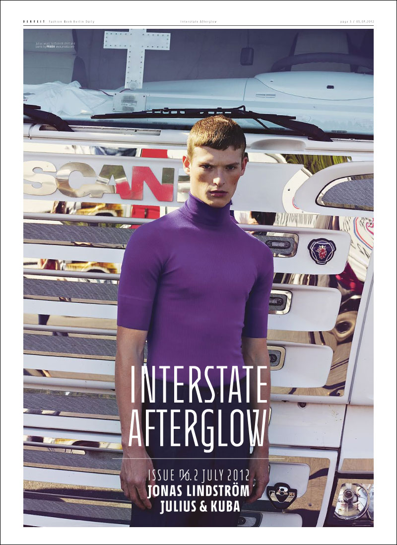 © by Derzeit / Photography Jonas Lindström / Art Direction Manuel Schibli / Fashion Direction & Styling Sebastiano Ragusa / Hair & Make-Up Tom Strohmetz at Nude (using MAC) / Models Kuba at The Right Stuff Management, Julius at The Special / Backstage Photography & Production Assistance Jessica Barthel / Production & Casting Alice Kuhn & Manuel Schibli. Courtesy of – coutequecoute.blogspot.com
