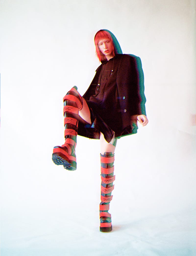 “Santa Kyra captured by the lens of Encarni Lovex and styled by Jorge Bachiller with pieces from Shoop Clothing, 44Studio, Raf Simons, Balmain, Junya Watanabe and more, in exclusive for Fucking Young! Online.