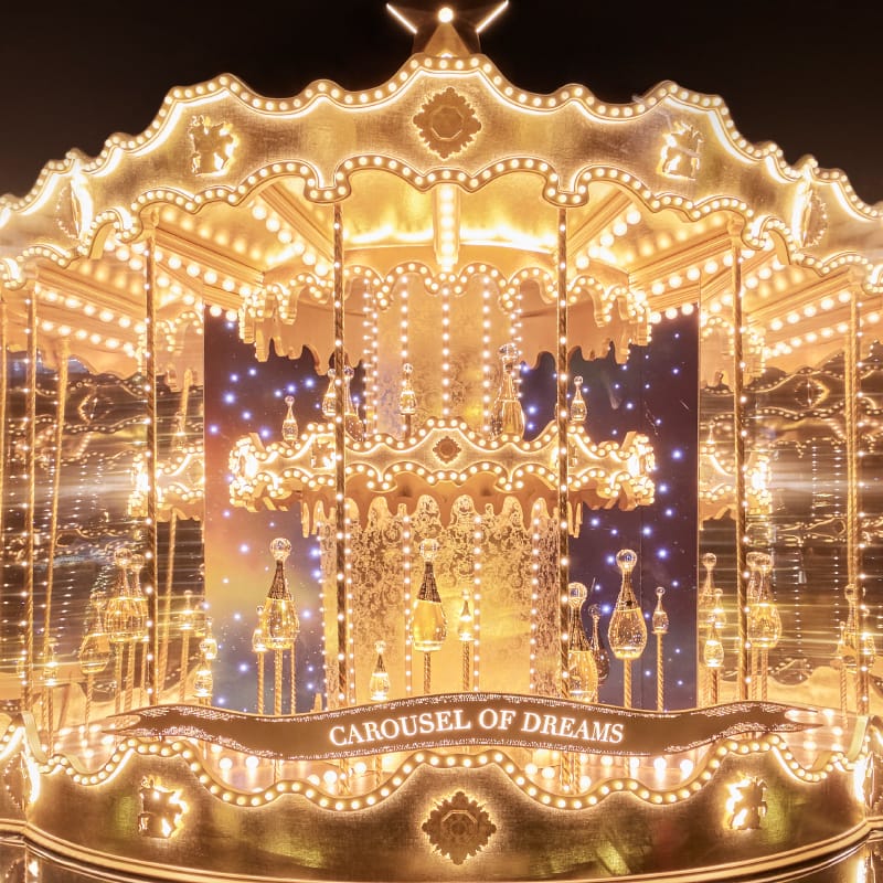 Dior and Saks have joined forces to create the Dior Carousel of Dreams at Saks, a spectacular display of festive magic and craftsmanship. This remarkable project celebrates the long-standing relationship between Dior and New York, which dates back to over seven decades. The front of Saks Fifth Avenue New York was transformed by a stunning installation that showcases Dior’s signature symbols. A huge Ferris wheel, inspired by a design by Pietro Ruffo for the Dior 2024 cruise collection by Maria Grazia Chiuri, featuring the star, the clover and the Zodiac signs.