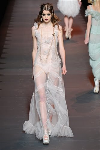 Yet despite the dazzling choices of clothes, designer fashion requires an imaginative narrative without which even the most elaborately constructed garments are just mere clothes that in a few months’ time we will forget. Over his 14 years at Dior, Mr. Galliano provides us with that precise plot season after season, like a bedtime story taking us away from the utter banality and mundane business of fashion.