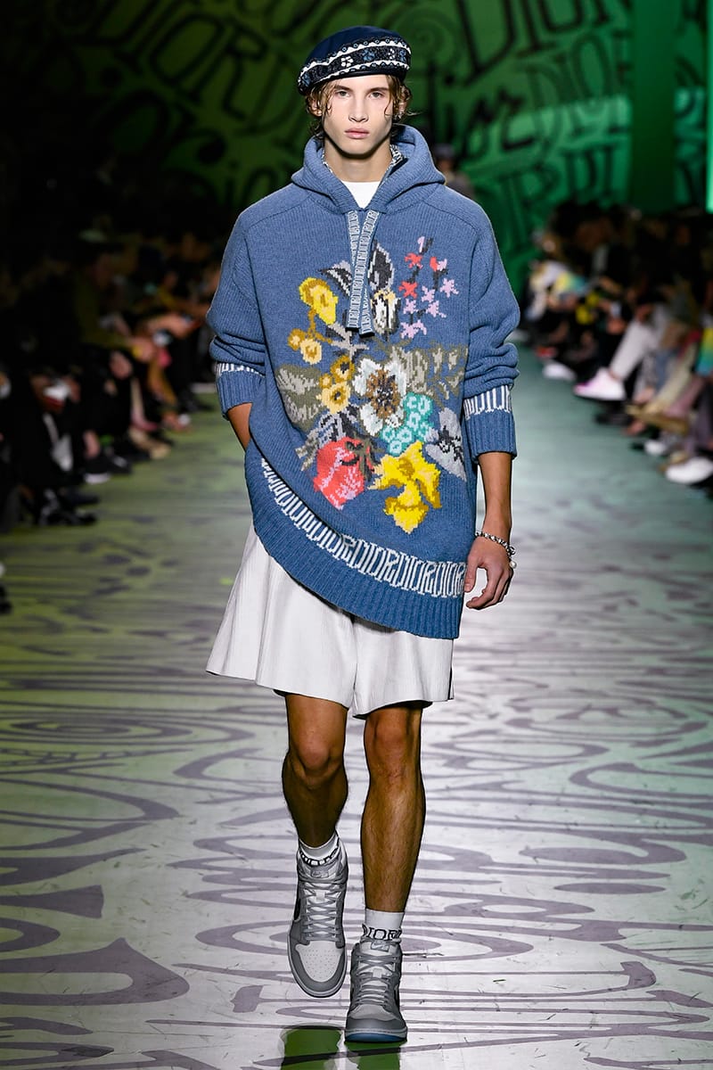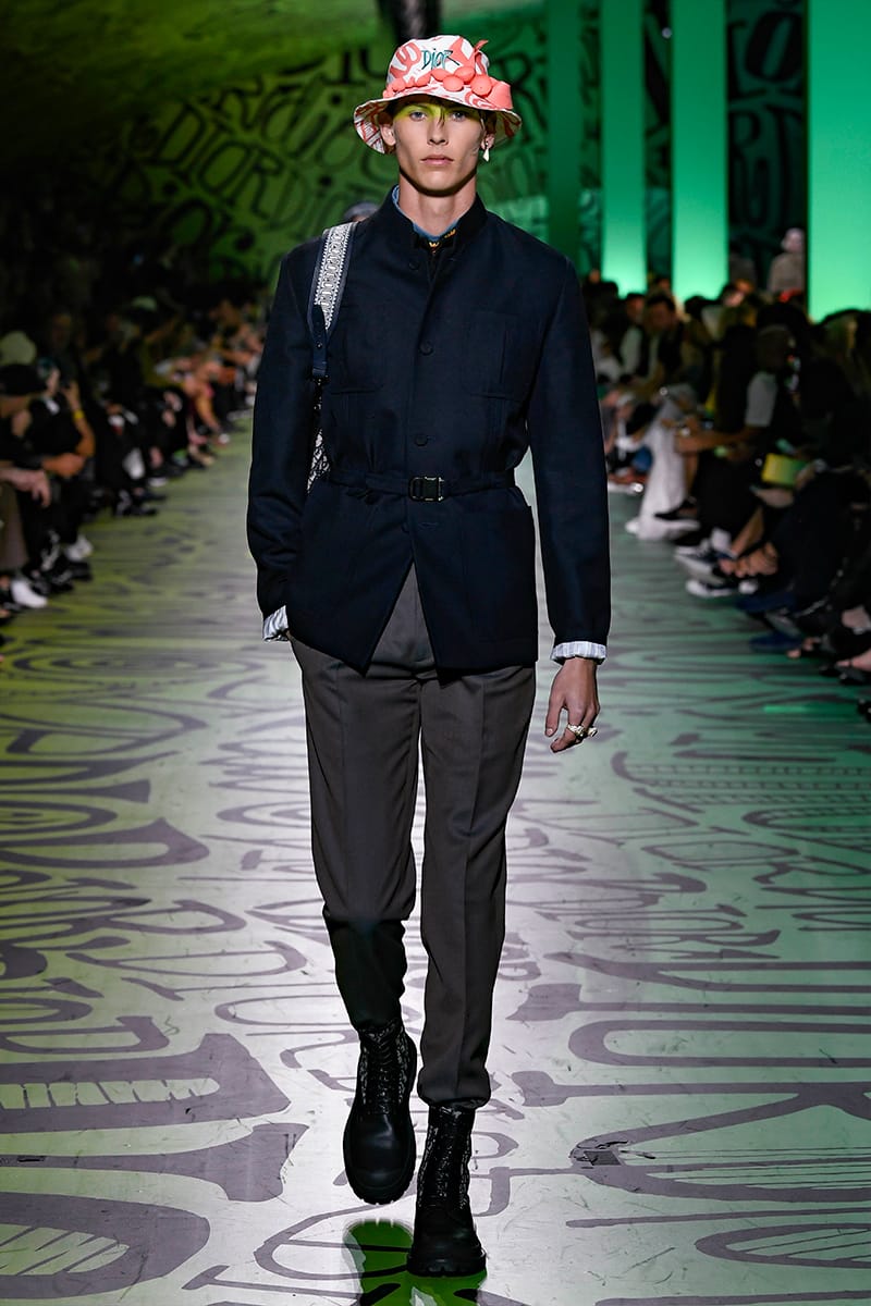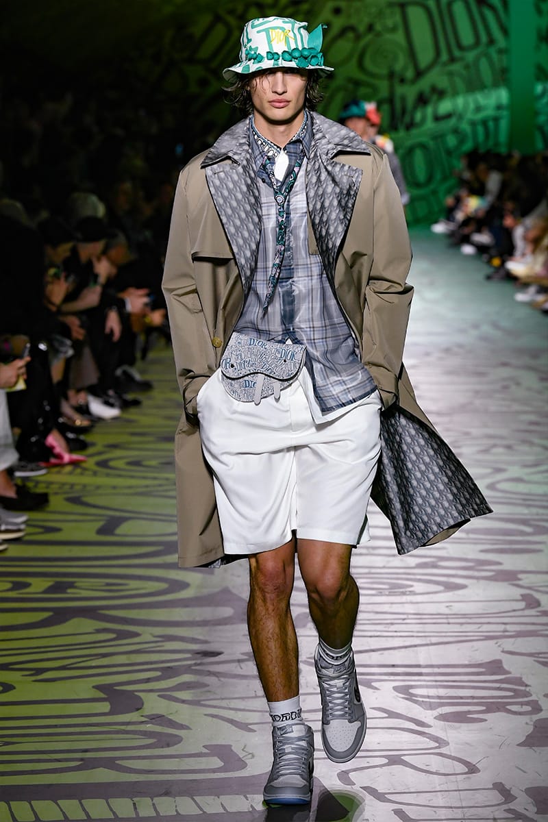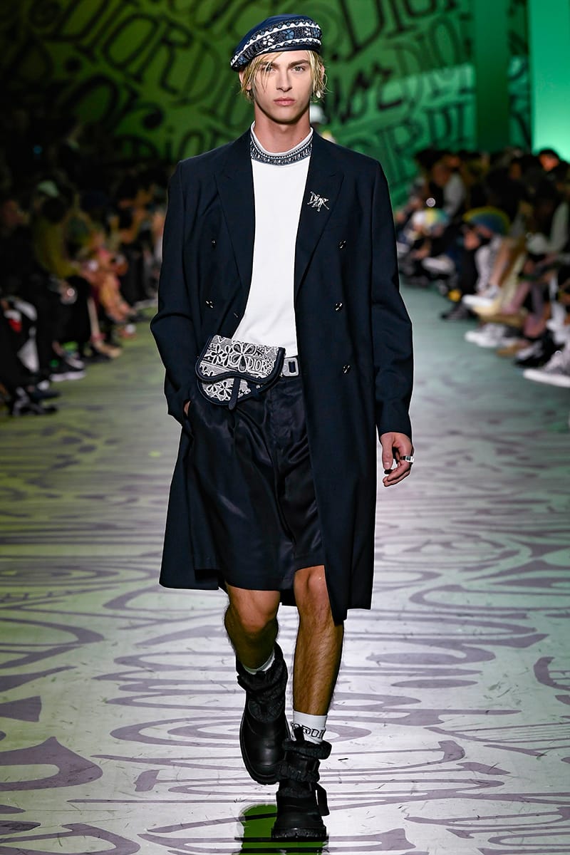 Kim Jones has significantly reshaped Dior since his appointment as artistic director at the French Maison, along with an all-inclusive team, crafting saddle-shaped bags, cultivating art references and fostering quintessential sartorial grandeur. However, in spite of the poise and nifty vibes, the key development that’s flaunted across his ever-polished aesthetic has been the playful algorithm mingling between couture and street. Such a shift has fronted a new wave of veracity towards Jones’ creative ethos, who often tries to liaise slick-meets-street canons of modern dressing with a pretty tasteful -yet dashing- allure. As such, the Dior man implies peerless sophistication. His tenure saw a grand boost in sales, and unquestionably, his decadent show has brought nothing other a terrific sequel to that, starting with the collaboration with Shawn Stussy, an artist who managed to overhaul the Maison’s logo and bee. As soon as the partnership was revealed ahead of the show, Dior was able to serve-up “lit” to the brand’s central literature. Being a hype-filled provocateur by nature, Jones’ well conscious on how to buzz-off the internet. Case in point: The Supreme collaboration while at Louis Vuitton was, in fact, remarkably-deliberated. Outwardly, Stussy’s and Dior’s alliance might appear as a cunning move on behalf of the label. Furthermore, it could be feasibly inferred as a redux of Supreme’s: nonetheless, it’s completely authentic. A recent press release had Jones remarking: “I don’t choose people because they’re famous.” He adds: “When something becomes as iconic as that, it’s in the culture […].”As far as luxury (and for the most part, hype) are concerned, fans have witnessed the release of the new Jordan Air by Dior, produced in Italian factories that used the same leather found in French houses’ bags. The sneaker features the trademark swoosh in the Dior oblique logo-jacquard, detail which took its major prominence and vigor on the catwalk. And believe it or not, Air Jordans are what the designer collects; he owns a whole lot of 40 pairs. But the cherished sneaker epitomized just the start of the street-meets-slick sartorial meld. Camp shirts in customary Stussy styles were finely beaded, emblazoned by micro/macro detailing that vulcanize a bold textural statement, forging a new era of luxury. Elsewhere invigorating chromatism’s set against subtler palettes, nodded to hybrids that resolutely convey urban-luxe functionalism, emblazoned by a dose of refined and structural tailoring. The seamless points of tailoring streamline the man’s dressing code, defining a somewhat sporty-chic feel, able to alternate both sophistication and practicality. Urbanity indulged ease, fashioning a wacky anthology of refreshing cues for a generation capitalizing in politics and styles. Jones did good, indeed.