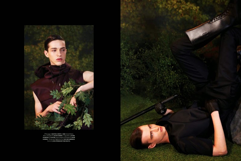 Grace & Discipline–It’s off to the park for models Laurie Harding (Fusion), Martin Conte, Matt Woodhouse, Stephen James and Victor Nylander as they appear in a story for the latest issue of Document Journal. Styled by James Valeri in the spring/summer 2014 collection of Dior Homme, the models pose for the lens of Collier Schorr. Here, the sleek modern designs of Dior Homme creative director Kris Van Assche are highlighted against a hyper-reality. Courtesy of – thefashionisto.com