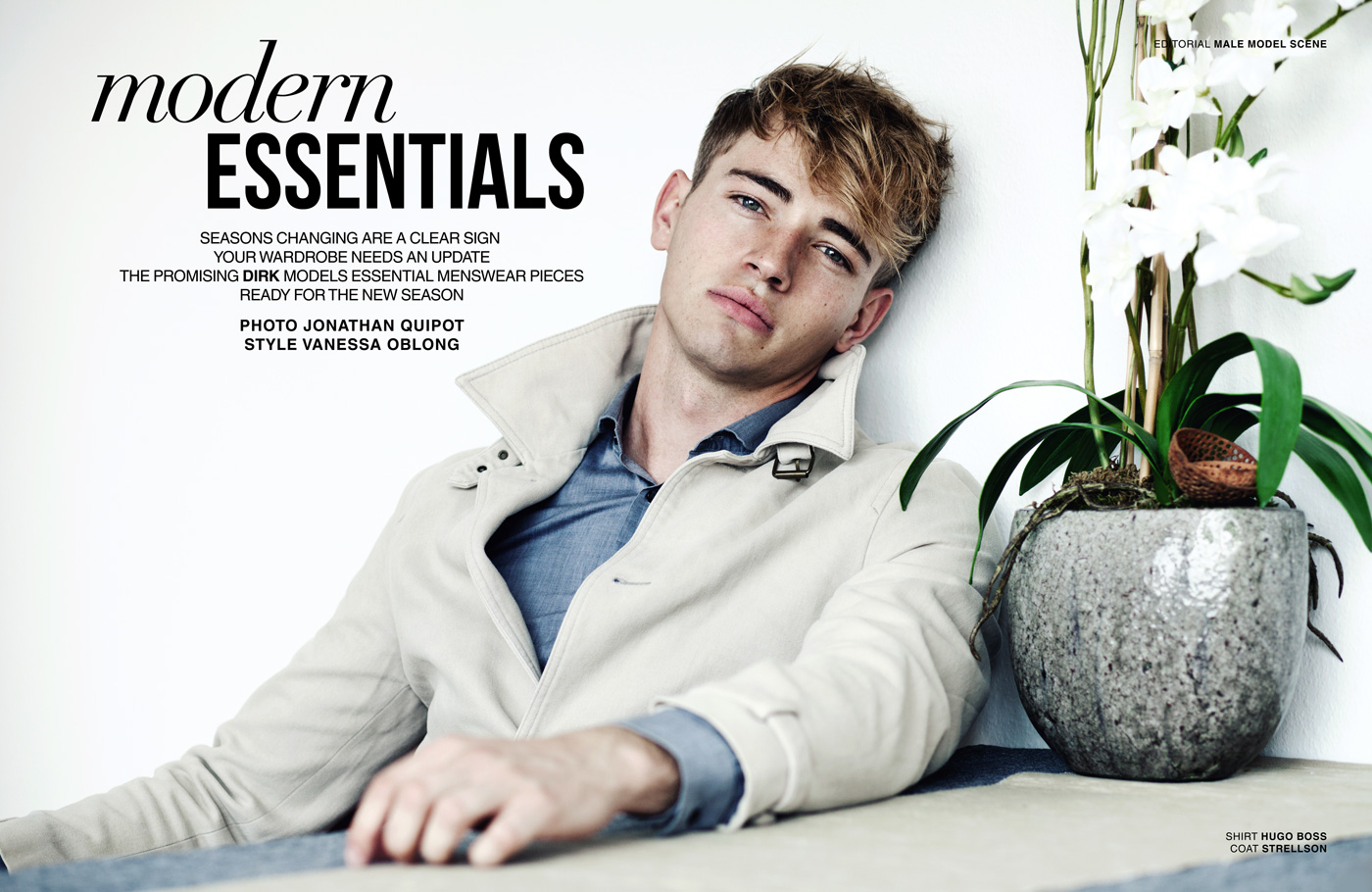“Modern Essentials story featuring the promising Dirk Uys photographed by Jonathan Quipot for MALE MODEL SCENE with styling from Fashion Stylist Vanessa Oblong. Seasons changing are a clear sign your wardrobe needs an update the promising Dirk models essential menswear pieces ready for the new season. Therefore Vanessa has selected essentials from Paul Smith, Hardy Amies, Ralph Lauren, Hugo by Hugo Boss, DKNY, Replay, Alexander McQueen, Versace, Diesel, Strellson, Select, Urban Renewal, Topman as well as Zadig & Voltaire. Timepieces come exclusively from Cartier Watches.” – Malemodelscene.net