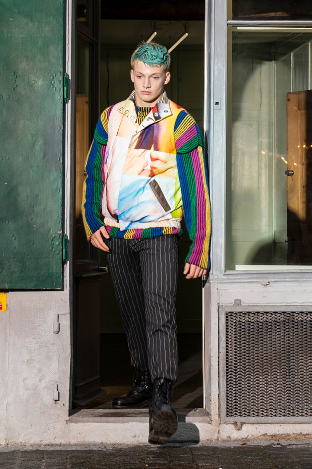 “Fashion designer Julian Zigerli presented his Autumn Winter 2018 collection during the 14th edition of Mode Suisse. Inspired by the work of cult photographer Walter Pfeiffer, Zigerli artistically translates his colourful vision of the male form into a collection for both men and women.