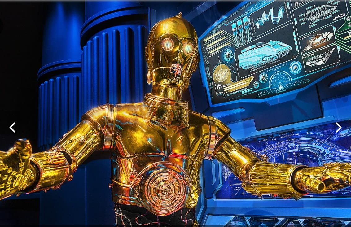 “Featuring a flight simulator, digital 3D video, Audio-Animatronics characters and “in-cockpit” special effects and music, this attraction immerses you in the Star Wars mythology for an unforgettable intergalactic adventure.