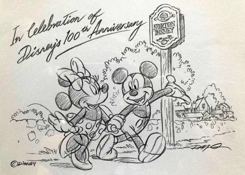 Durand handed over a specially commissioned picture of Mickey and Minnie Mouse walking through Norton Disney, drawn by Disney illustrator Kim Raymond.