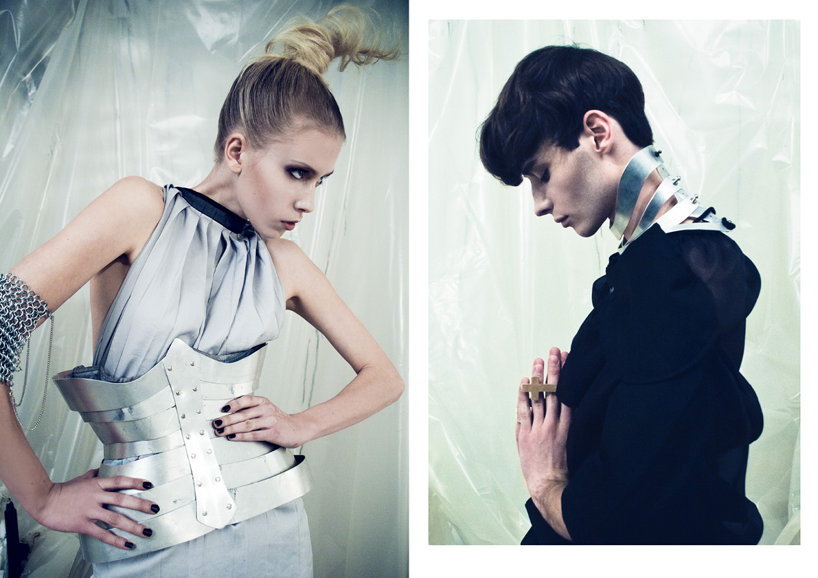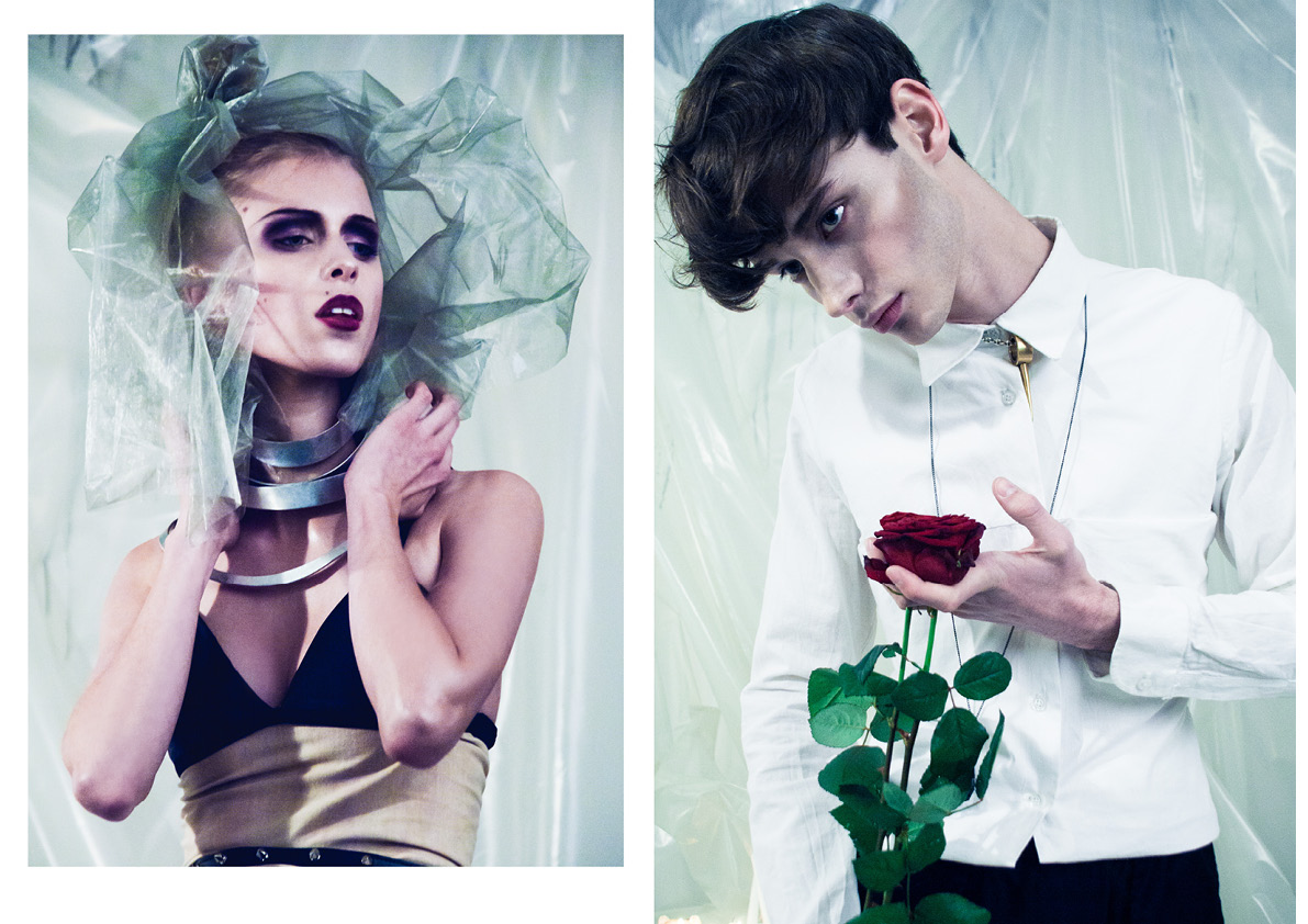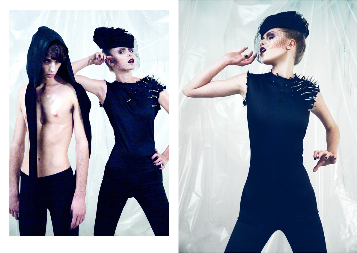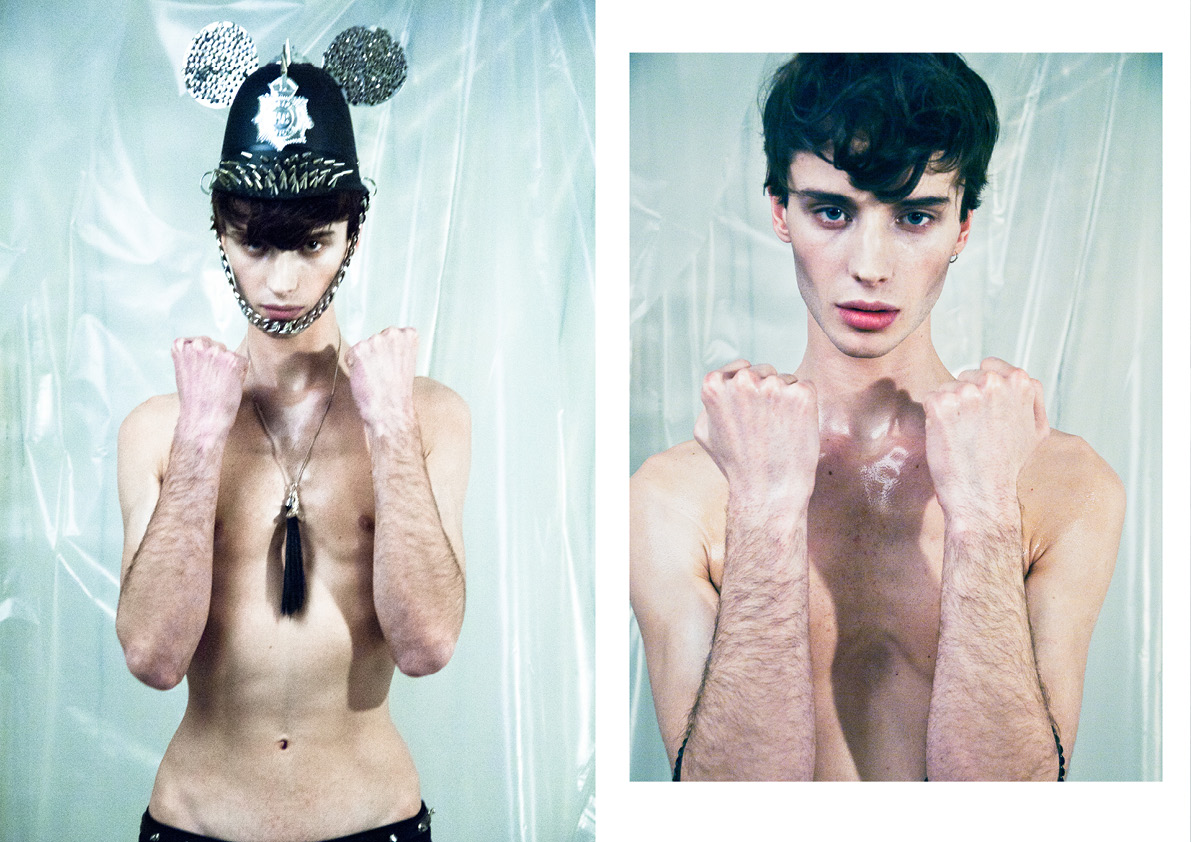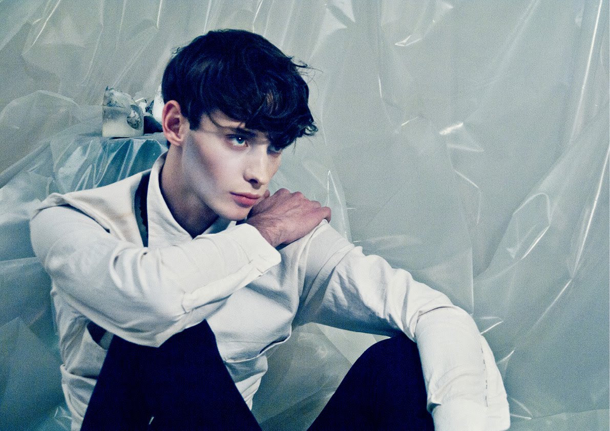 Solomon Thompson is captured by Daniel Neale and Jackie Bai Chen for Sheer’s first issue in a series of serious shots against drama, drama, and more drama, wearing (of course) dramatic pieces with a skinny fit. Courtesy of – hommemodel.blogspot.com