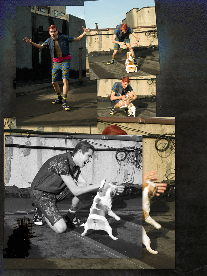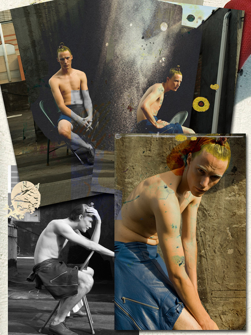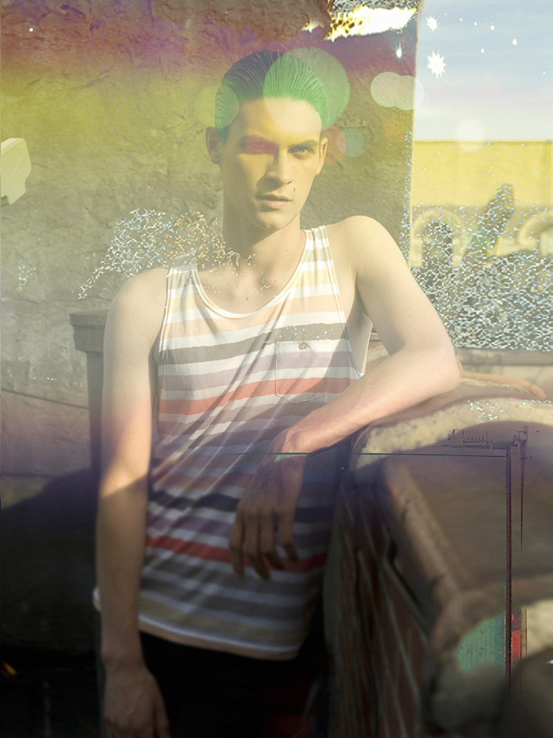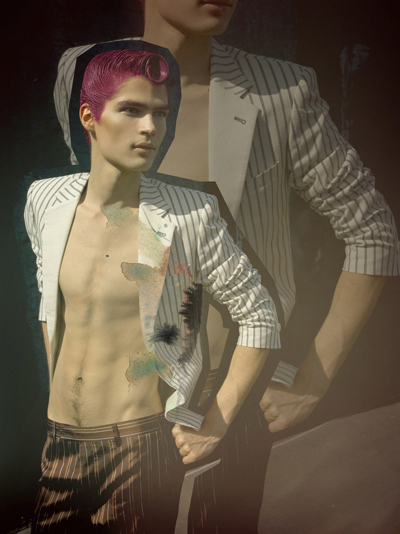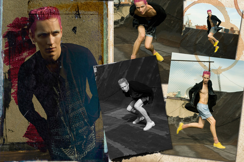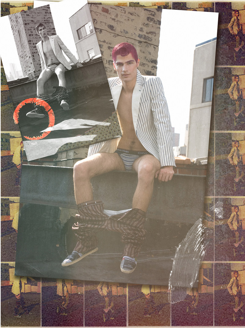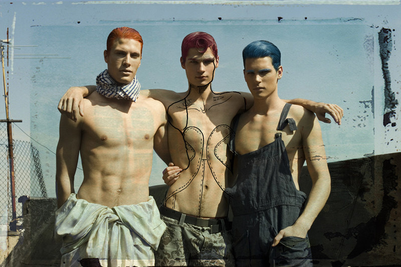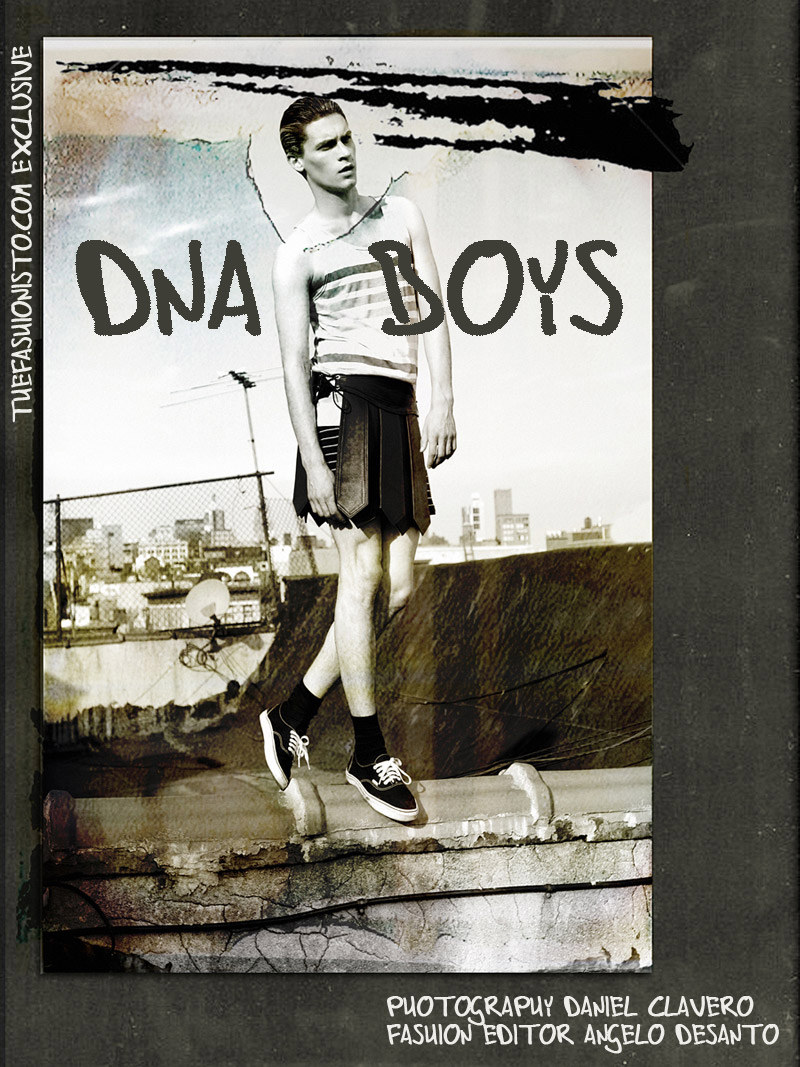 It’s in the DNA–Hot on the heels of our Request story, we share a love for DNA’s fashion-forward lot. Wearing humor on their sleeve, Axel Brorson, Christopher Landon, Gabe Byer, Guntars Asmanis, Luca Schmitz, Mark Bland, Miles Garber and Peter Bruder gather for a quirky story photographed by Daniel Clavero. Truly a team effort, the work of makeup artist Marni Burton, hair stylist Mylo Carrion and stylist Angelo DeSanto come together with the illustrations of Natalia Jhete for an infectious outing of zany fun. Courtesy of – thefashionisto.com