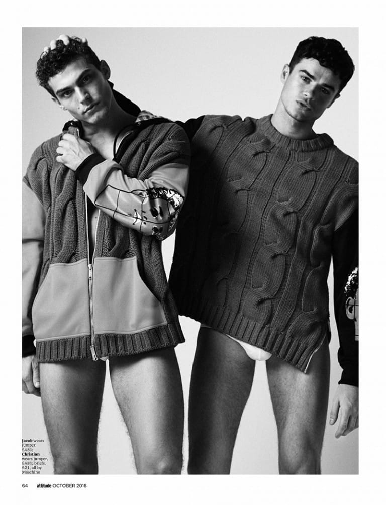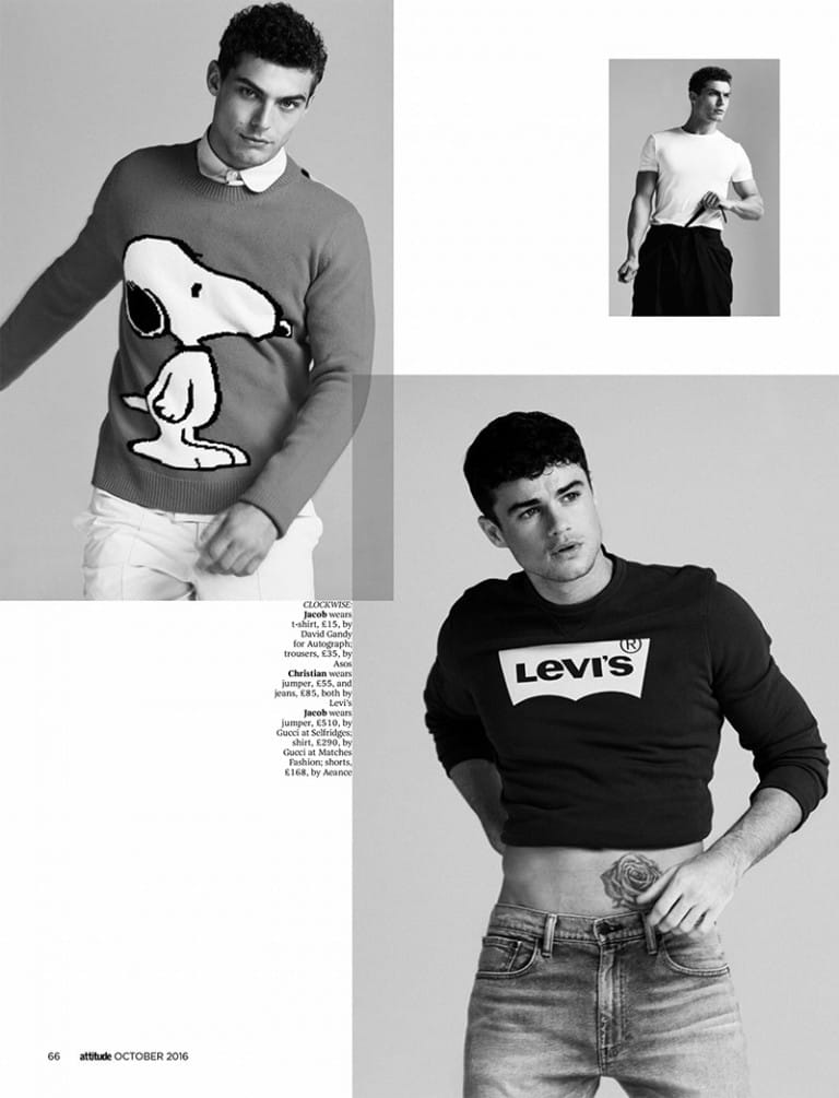 “Christian Williams and Jacob Hankin photographed by Leigh Keily and styled by Joseph Kocharian, for the latest issue of Attitude magazine.” – FY Magazine.es