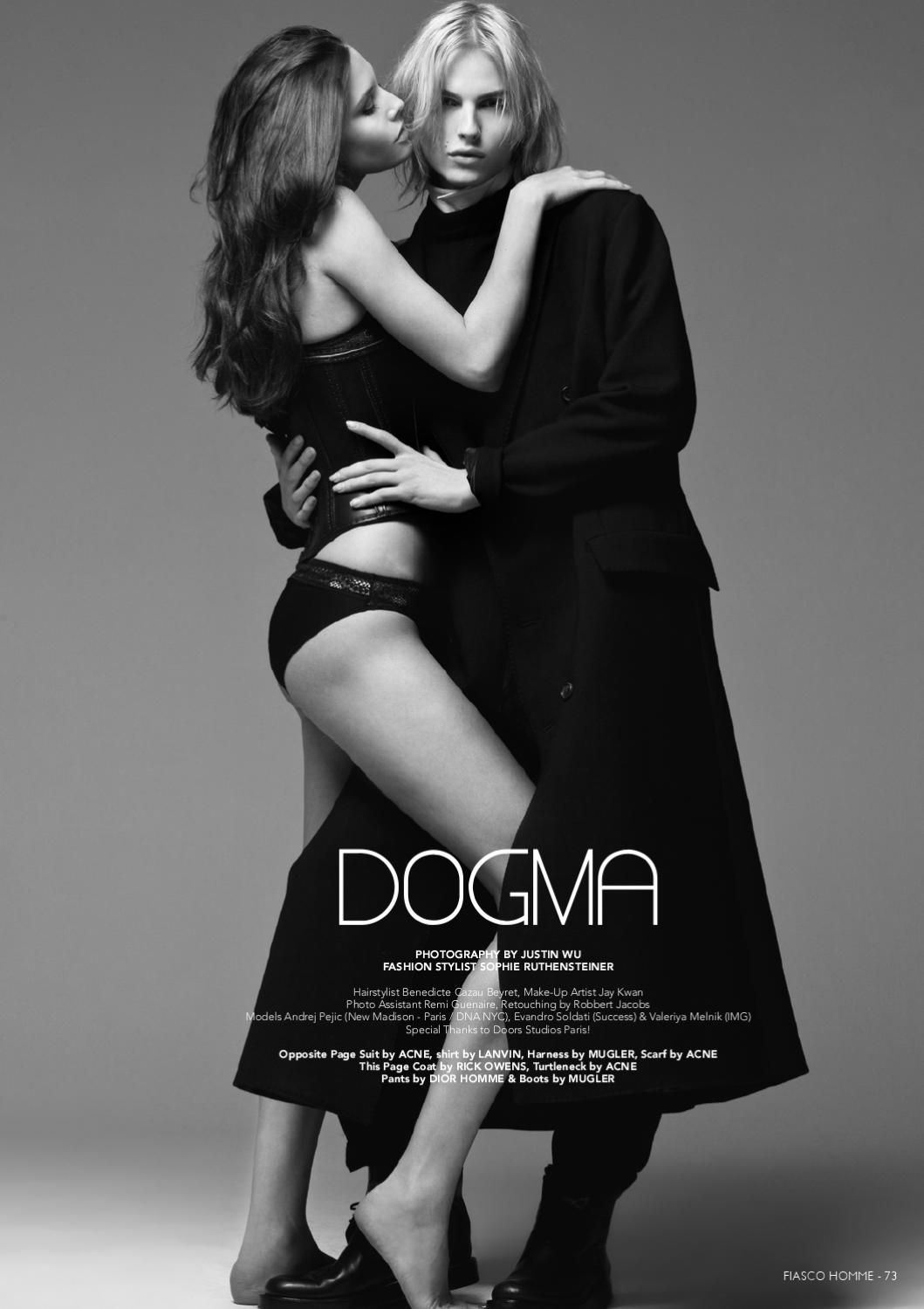 EDITORIAL: Dogma F/Homme #2 – Fall / Winter 2011 Models Andrej Pejic and Evando Soldati Ph Justin Wu St Sophie Ruthensteiner Justin Wu and Nicola Formichetti’s assistant, Sophie Ruthensteiner, work to…