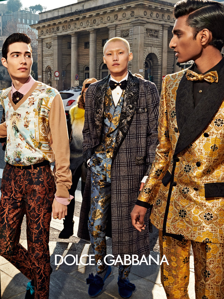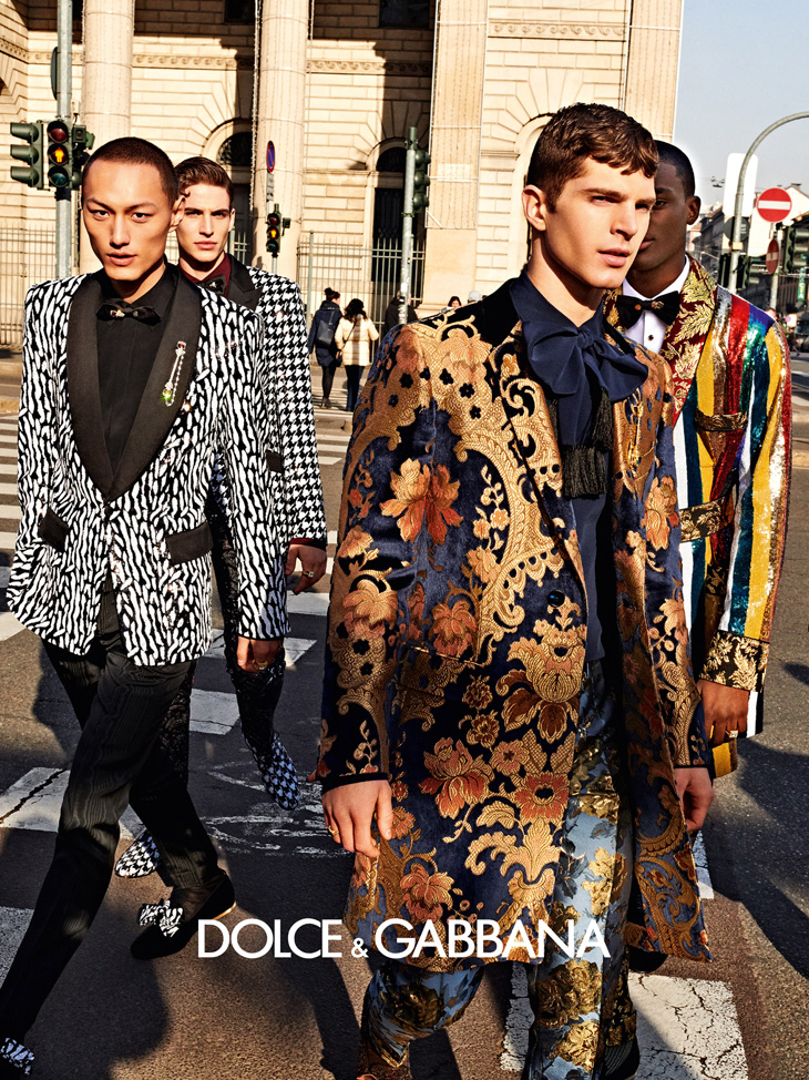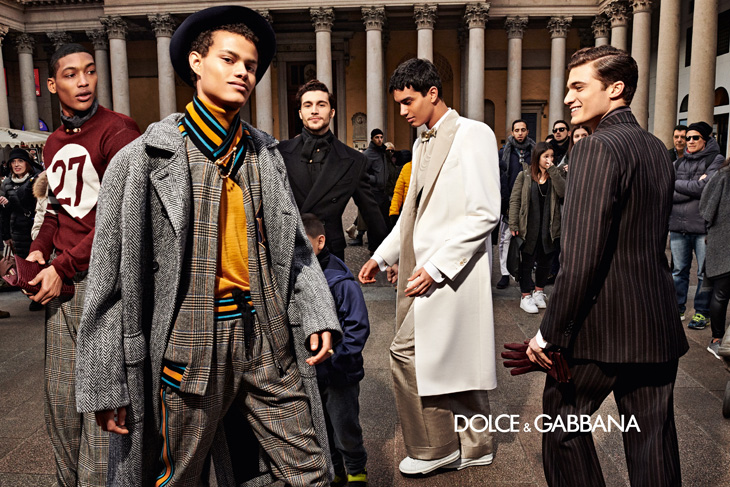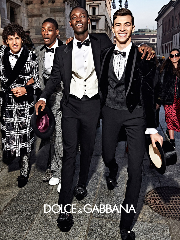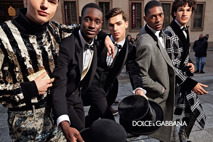 “Fashion photographer Branislav Simoncik captured Dolce & Gabbana‘s Fall Winter 2019.20 menswear campaign featuring Charles Oduro, Deano Perona, Francisco Henriques, Ivan Sudati, Leonardo Dieter, Marco Bellotti, Mimir Jensen, Oliver Kludjeson, and Qaher Harhash. In charge of casting direction was Carlo Savoldi.” – Malemodelscene.net