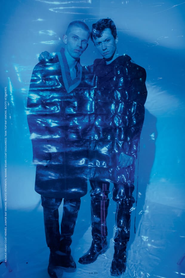 “Film Noir story captured for the pages of i-D Magazine‘s latest edition by fashion photographer Walter Pfeiffer features models Domonkos Szendrei, Rasmus Holm, and Maxime Tavoleira. In charge of styling was Hannes Hetta, with casting direction from Rene de Bathory, and set design by Sophear Van Froment. Hair styling is work of Marc Lopez.” – Malemodelscene.net