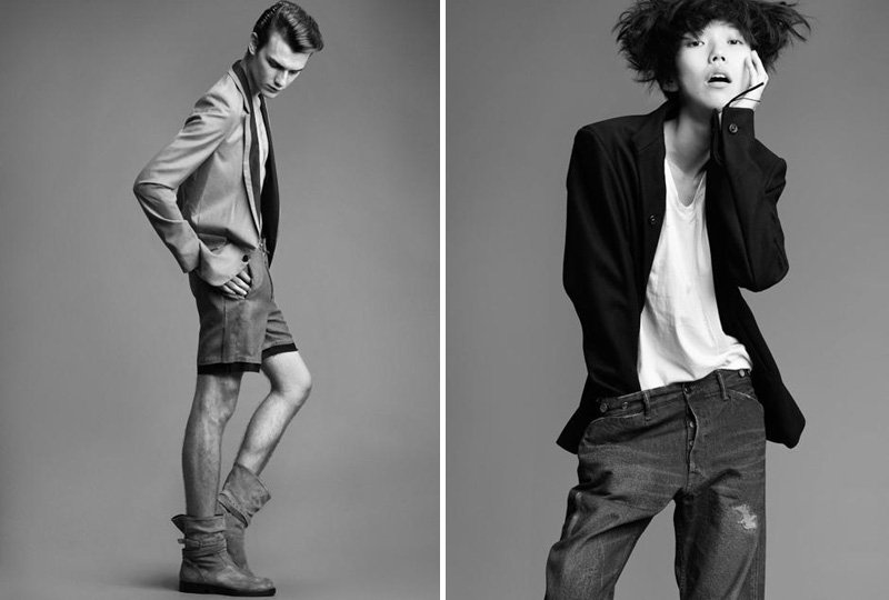 Douglas Neitzke and Tao Okamoto are photographed by Leslie Kee for two editorials on behalf of retailer Valveat 81. While Joe (D-cord) styles Douglas, Tsugumi Watari outfits Tao. Mixing and matching the latest from Balmain, Boris Bidjan Saberi, Kris Van Assche and other labels, the stylists pull together striking looks with a certain edge. / Hair by Dai Michishita with makeup by Yoshiyuki Wada. Courtesy of – thefashionisto.com