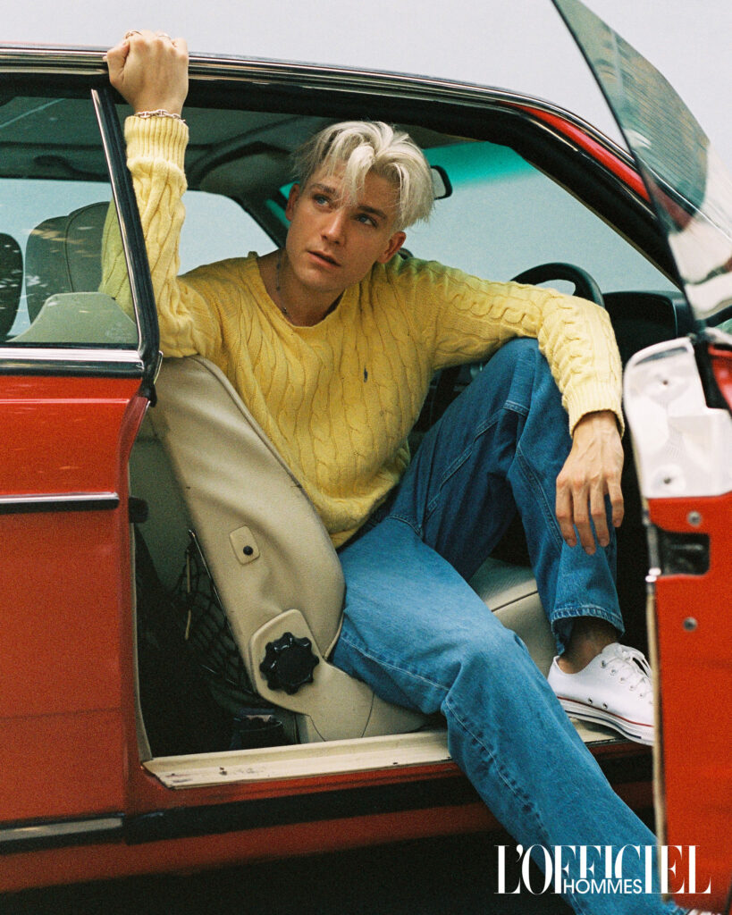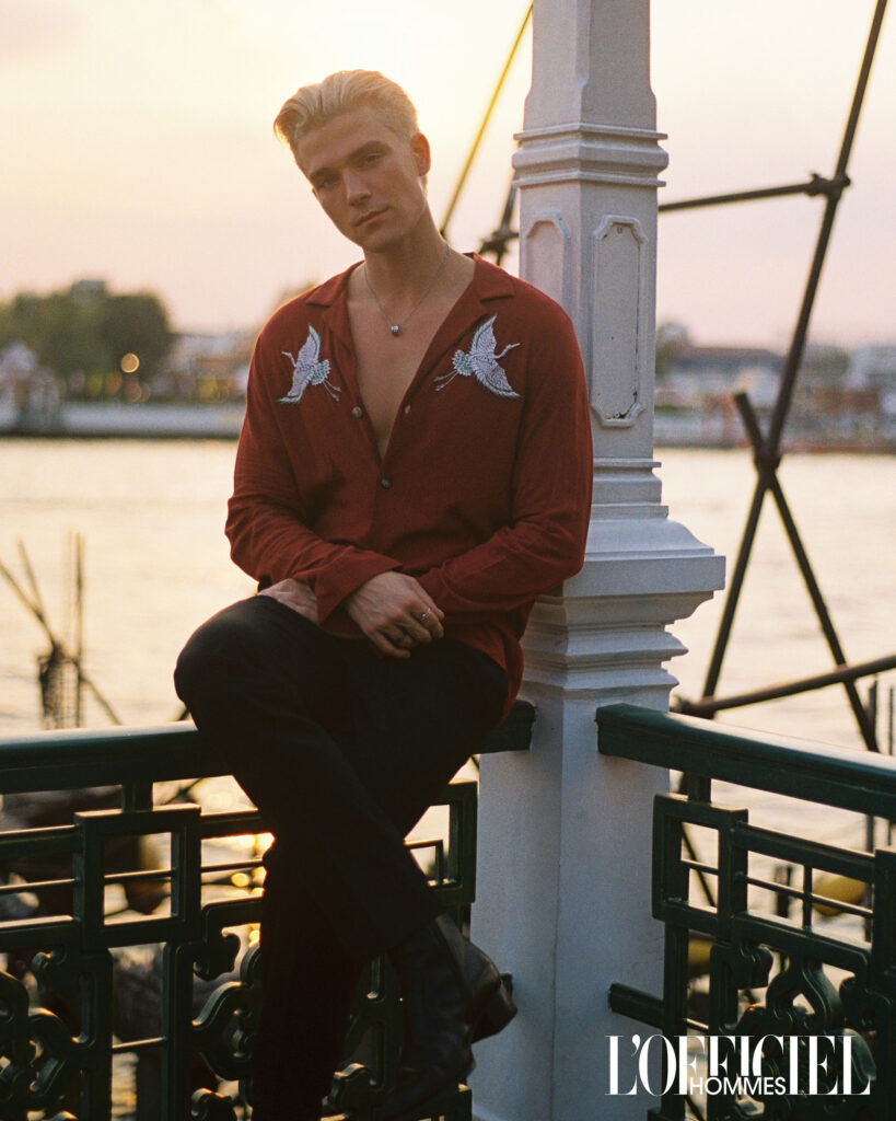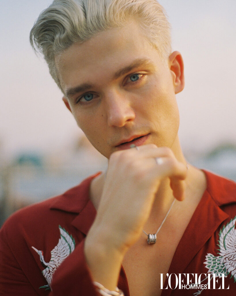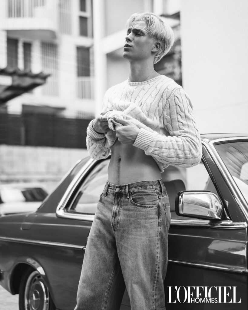 Shot by Sasha Olsen, the portraits lean into crisp tones and cinematic framing—highlighting Oliver’s striking gaze and youthful edge. (Olsen’s lens often plays with light and shadow, giving each image a timeless yet modern feel.)