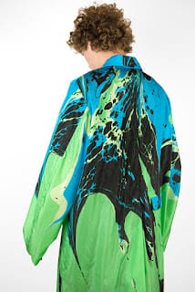 “Originally featured as the finale of his men’s fashion show and to celebrate the arrival of his Fall/Winter 2018 collection, Dries Van Noten has designed 10 exclusive Ebru marble printed raincoats each with its own colorway. A limited stock of 10 of each color will be available at 10 selected stockists worldwide for a limited period.