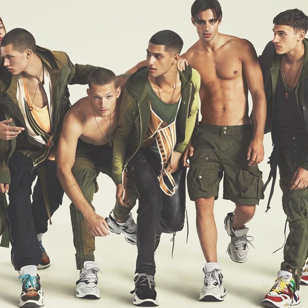 “Discover Dsquared2‘s Spring Summer 2019 advertising campaign featuring models Barak Shamir, Elliot Meeten, Janusz Kuhlmann, Jordan Genidogan, Martijn Faaij, Paulo Spencer, Tommy Hackett, William Los, Birgit Kos, and Irina Shayk lensed by fashion photographers Mert Alas and Marcus Piggott. In charge of styling was Panos Yiapanis, with creative direction from Giovanni Bianco, and casting direction from Piergiorgio Del Moro. Beauty is work of hair stylist Sam McKnight, and makeup artist Gordon Espinet.” – Malemodelscene.net