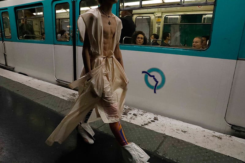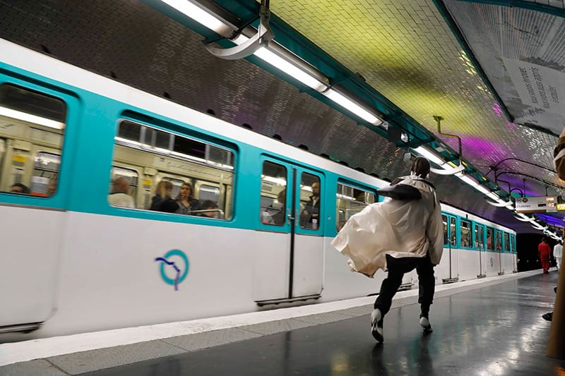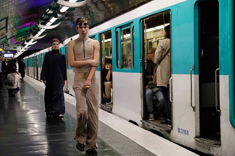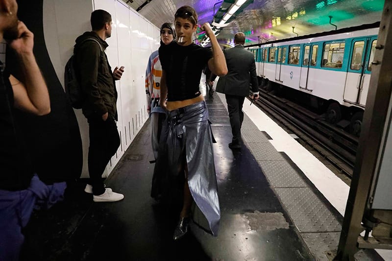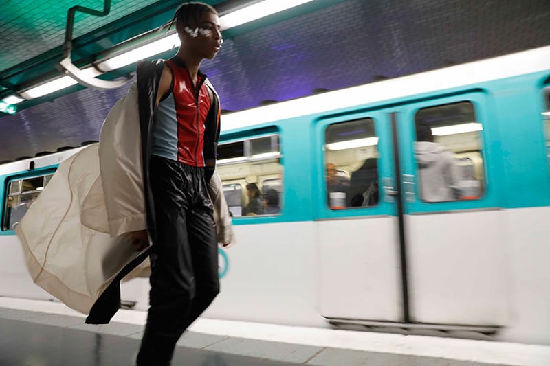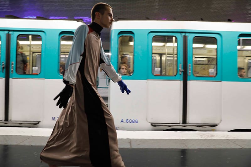 “Andra Dumitrascu showed her Spring/Summer 2018 collection during Paris Fashion Week, at the Centre Pompidou metro station.