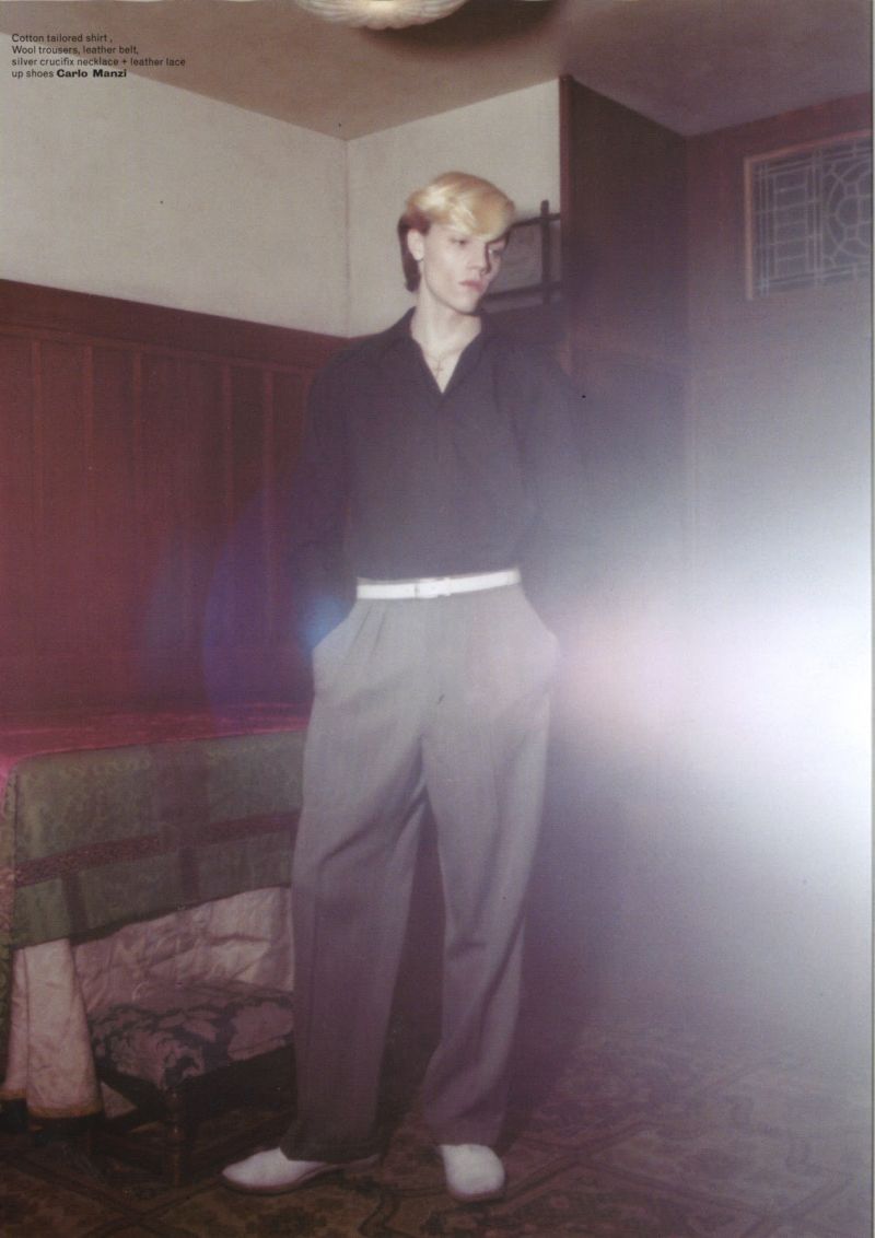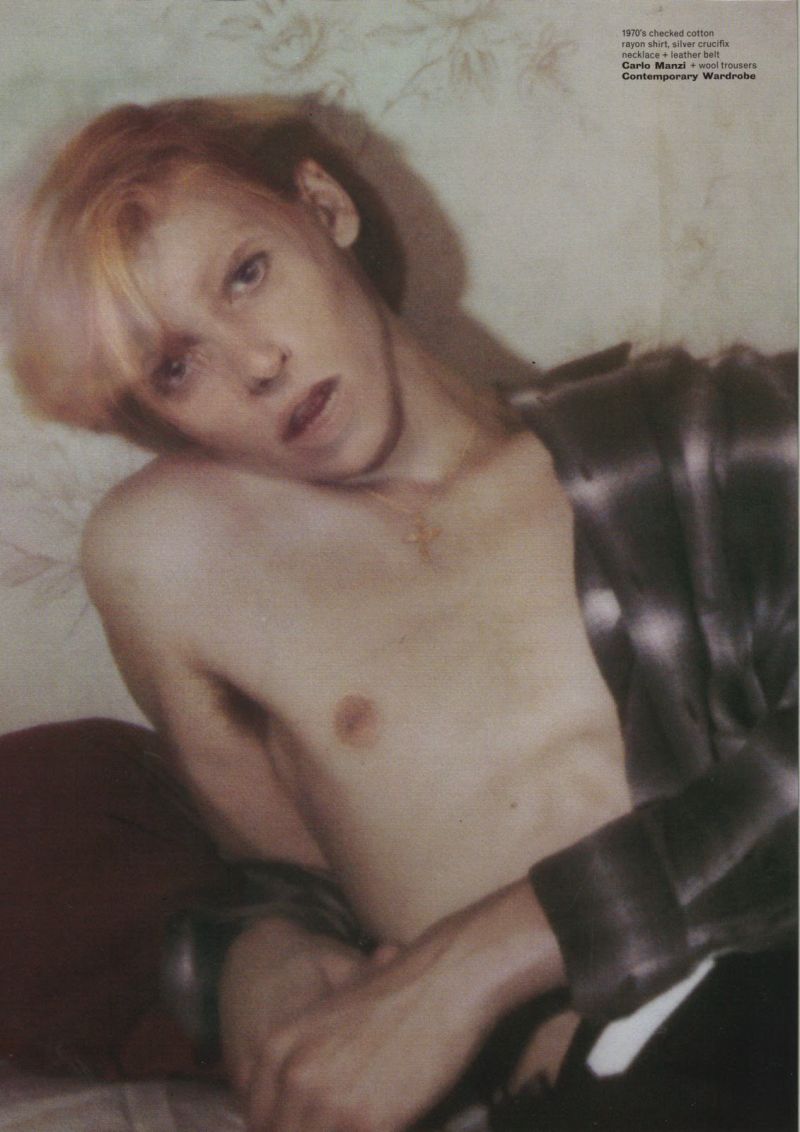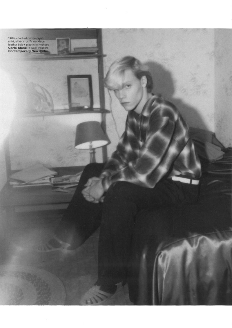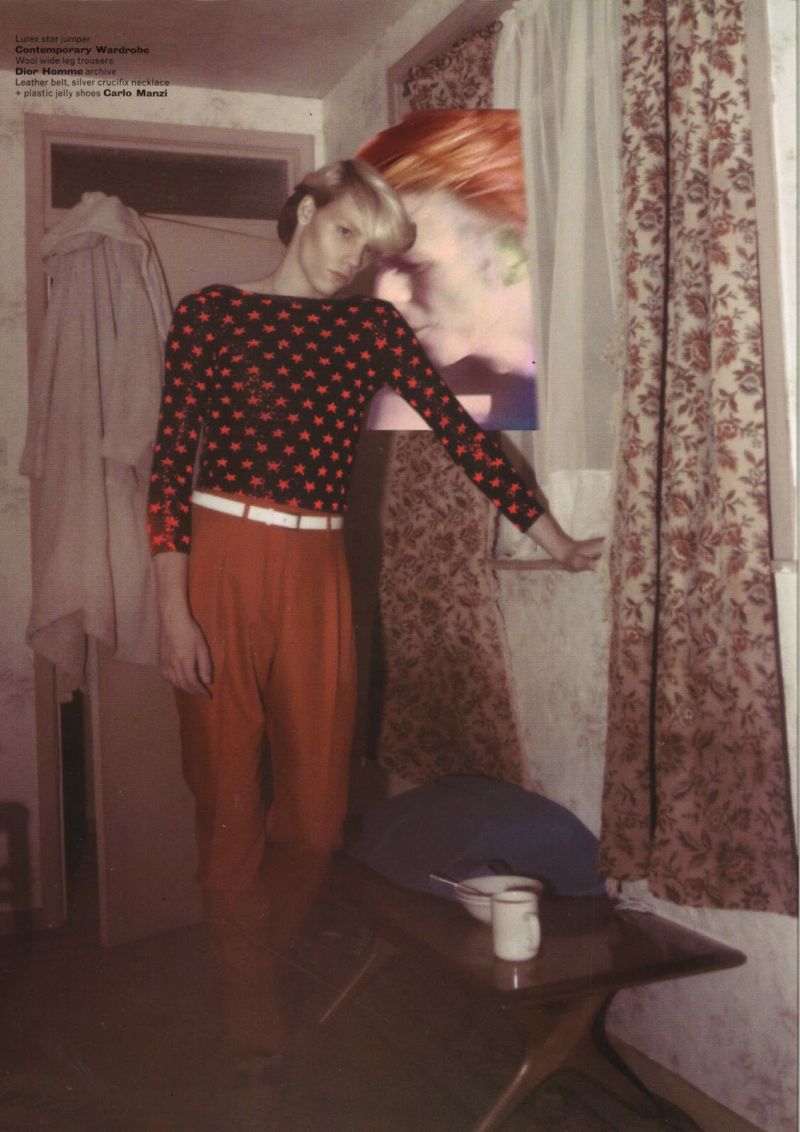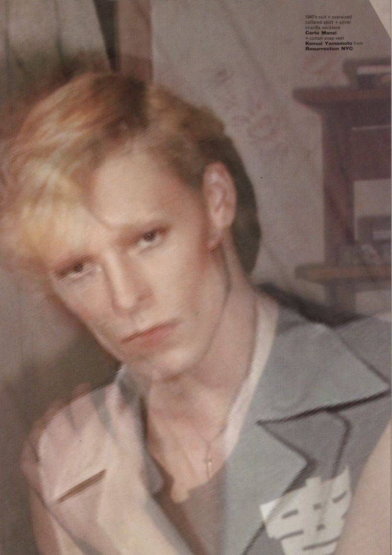 Legend Redefined–Photographed by David Sims, Duncan Pyke (Elite London/Major Paris) portrays the legendary David Bowie for Arena Homme+’s latest issue. Wearing retro pieces from Carlo Manzi mixed with garments from Dior Homme, Ann Demeulemeester and more, Duncan is outfitted by Joe McKenna. Courtesy of – thefashionisto.com