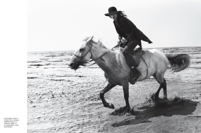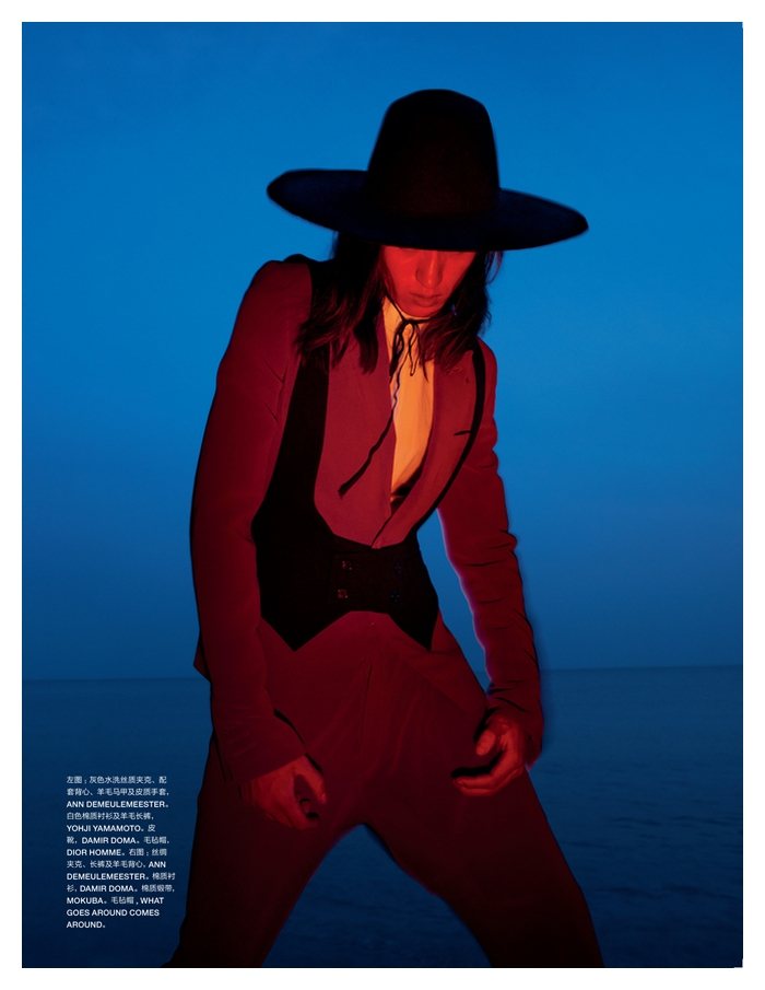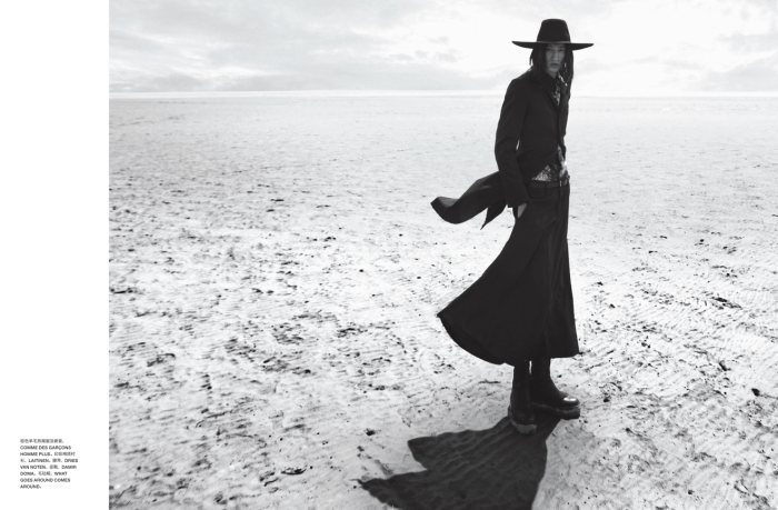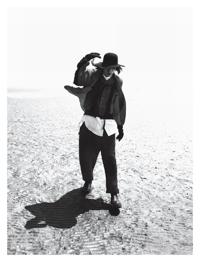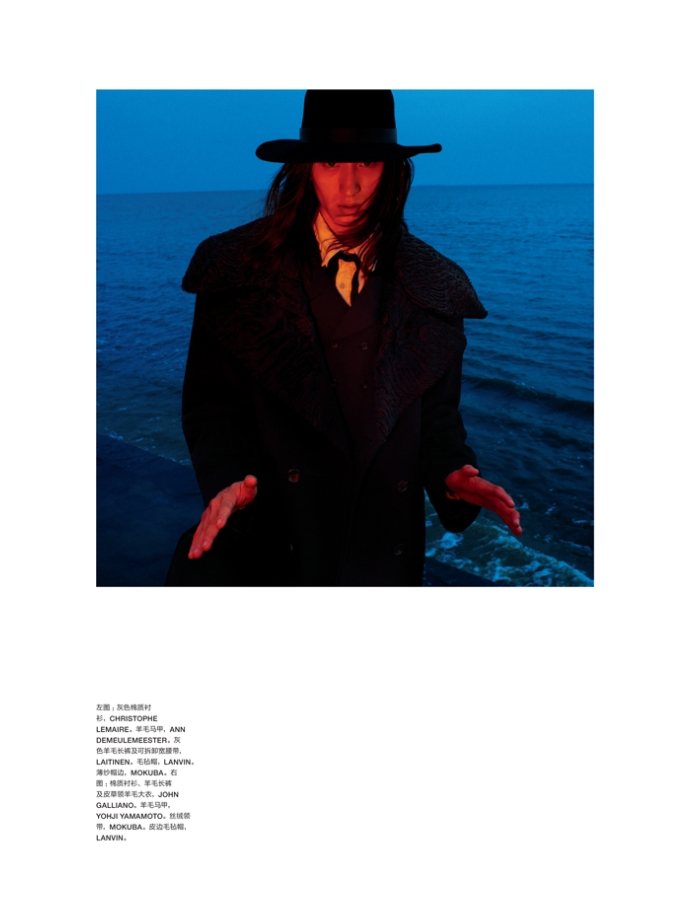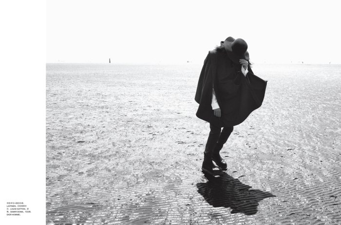 The Lone Figure–Capturing a moving scene on the beach, John-Paul Pietrus photographs Dushibo for the latest edition of Numéro Homme China. A dark romantic figure, Dushibo gets caught up in the season with a wardrobe featuring the likes of Ann Demeulemeester, Damir Doma and Dior Homme. Courtesy of – thefashionisto.com