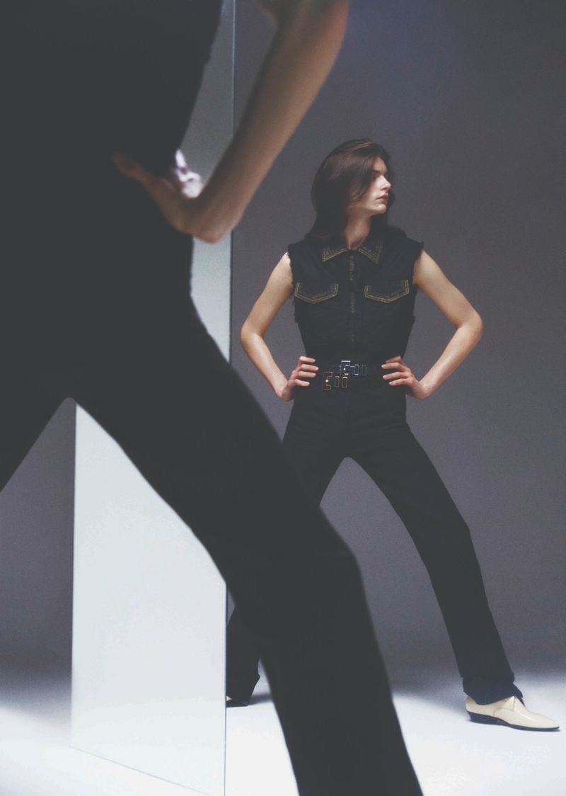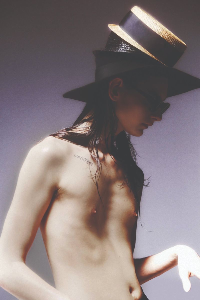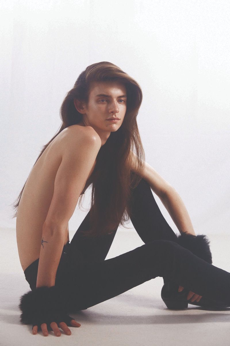 “Dylan Christensen is a svelte vision for 10+. Clad in Saint Laurent, Dylan stars in a cover story lensed by photographer Carlijn Jacobs. Wearing a season of Saint Laurent staples, Dylan is styled by Vincent Levy. An androgynous attitude prevails with a wardrobe of skinny jeans, sleeveless tops, statement jackets, thin belts, and leather boots.” – TheFashionisto.com