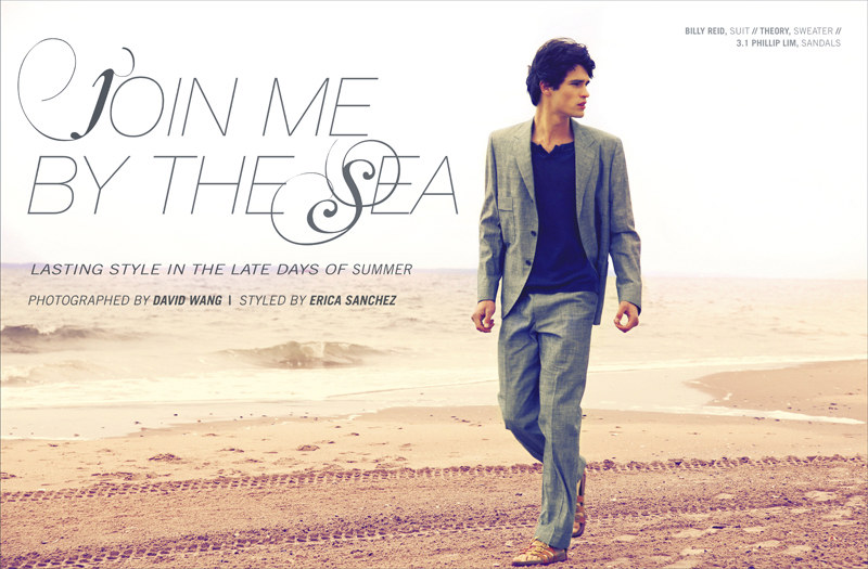 Summer Cool–Enjoying the seaside breeze on the beach, Dylan Reitz (Wilhelmina) is photographed by David Wang for Kenton magazine. Complementing the calm surrounding, Dylan is styled by Erica Sanchez in a quiet wardrobe featuring pieces from Theory, Kenneth Cole and 3.1 Phillip Lim. Courtesy of – thefashionisto.com