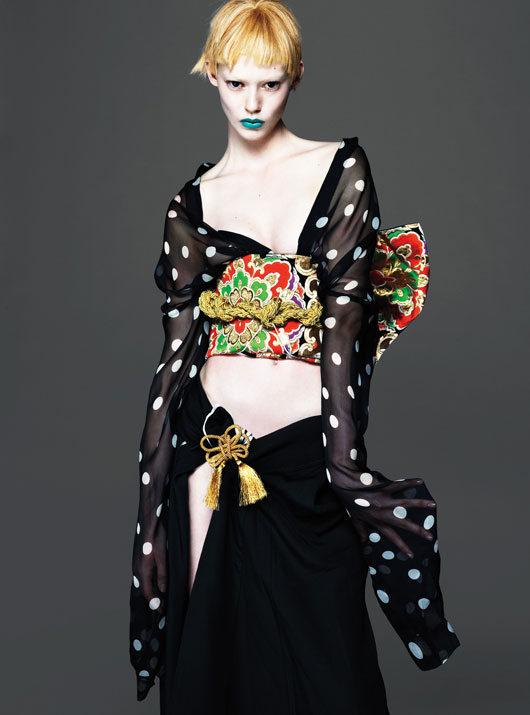 The March 2013 issue of W magazine features the geisha-inspired story ‘East of Eden’, photographed by Mert Alas and Marcus Piggott and styled by Edward Enninful with models Ondria Hardin, Saskia de Brauw, Xiao Wen and Yumi Lambert. Courtesy of – fashiontography