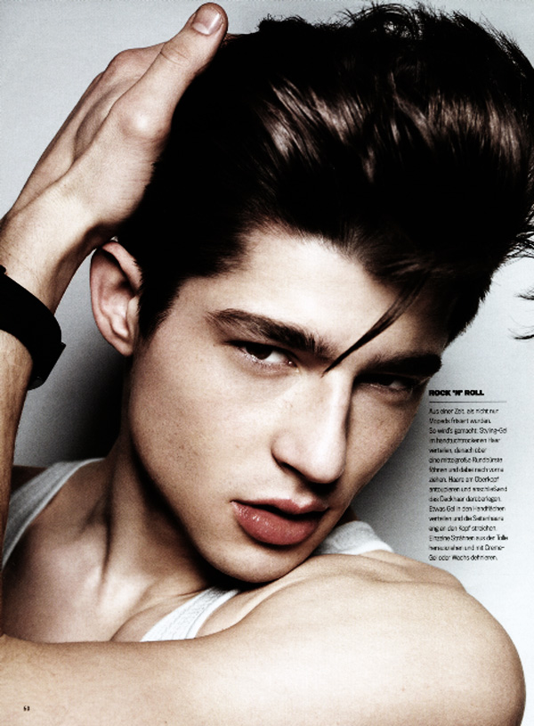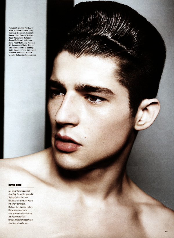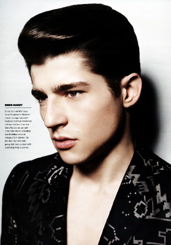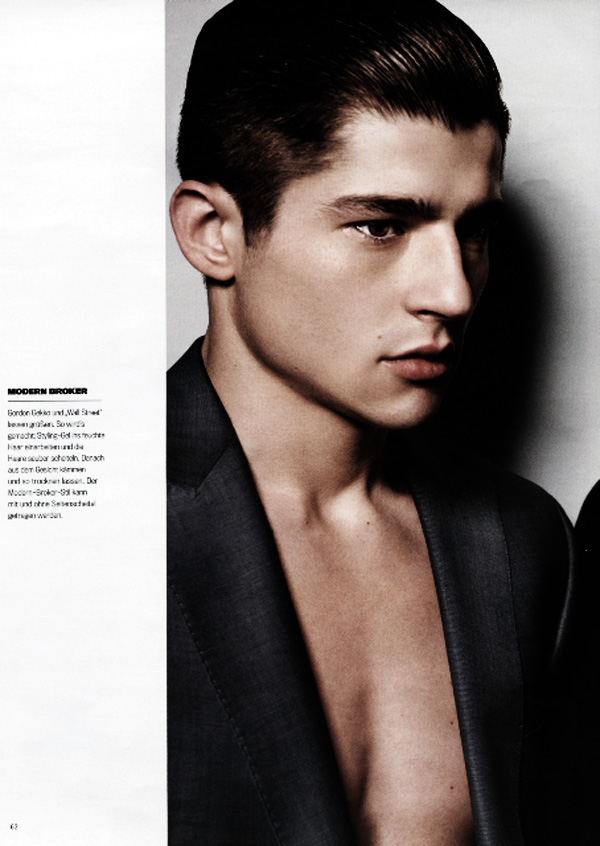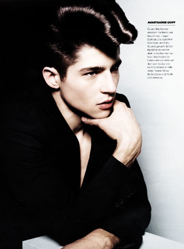 ‘PMA model Edward Barber stars in GQ Germany’s new beauty supplement, GQ Care. Sitting for photographer and professional groomer Armin Morbach, Edward lets his hair do the talking. From the avantgarde quiff to the modern broker, Edward adapts to each new look with great ease.’ – thefashionisto.com