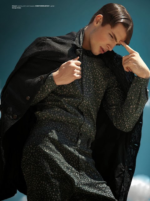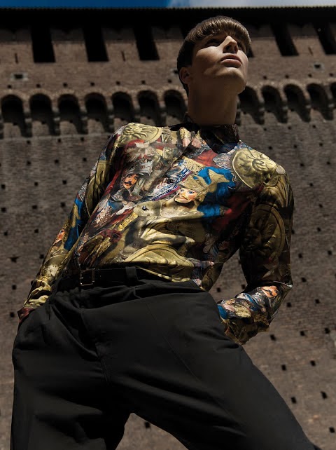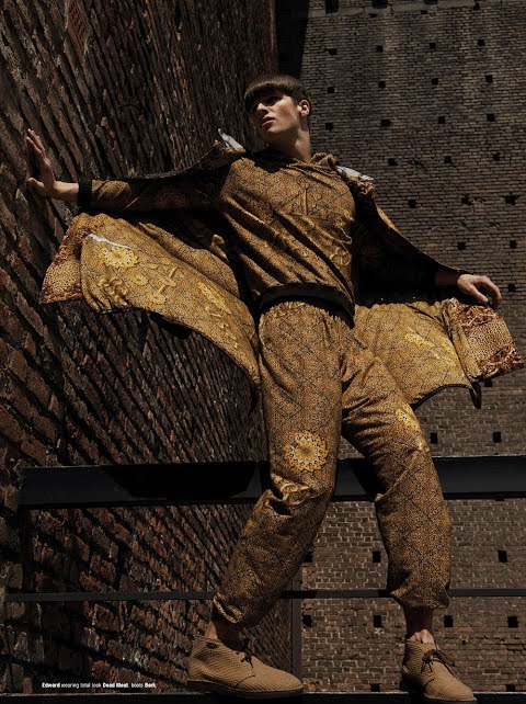 British model Edward Wilding at Fashion Milano is photographed by Ryan Jerome and styled by Alba Melendo Garcia in the story ‘Urban Predator’ for the 29th issue of Kurv magazine, with hair and makeup by Rory Rice. Courtesy of – Homotography